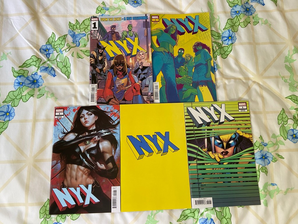 NYX’s new run with many variants! Since I saw Kamala on the cover, I’d hoped for more variants with her on them, but one is fine haha.