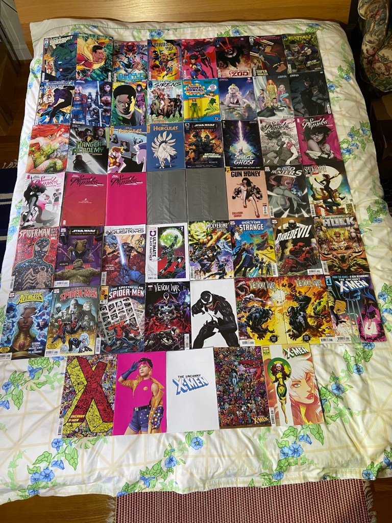 The cover of Shazam asks what is that and I don’t know, haha. I think this is the last Blue Beetle issue but I thought it was 12 issues, so we’ll see? Absolute Power rages on. We got a new Gotham City Sirens run! Also, a new Sweet Paprika one-shot to follow from last year’s. Matt seems to have some Kingpin troubles. Storm has joined the Avengers! The Venom War event has begun! And Uncanny X-Men got a new run in this new era.