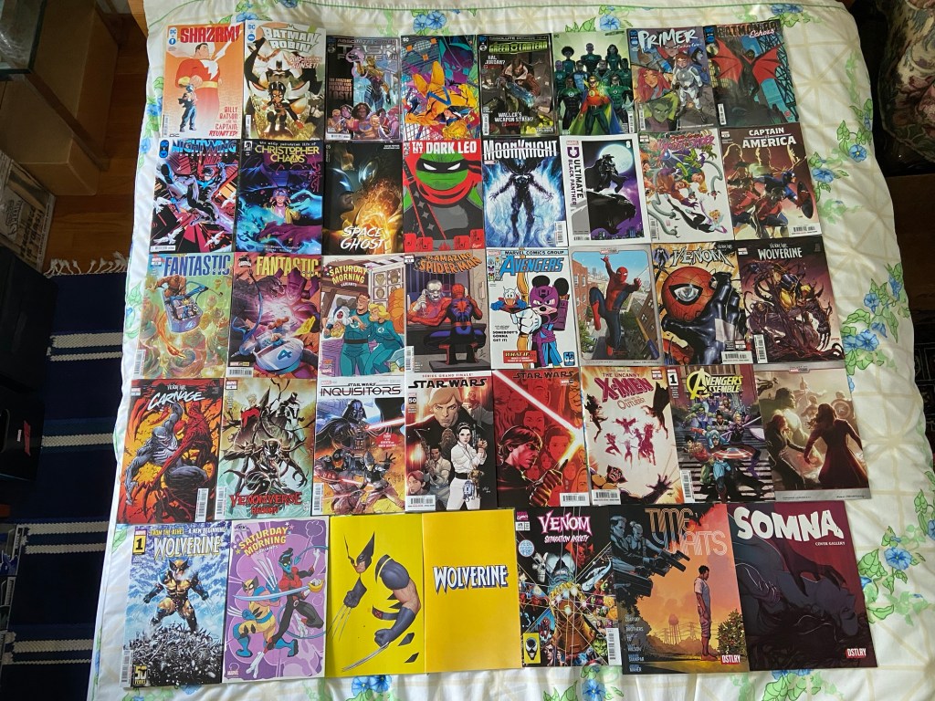 I guess things are looking up for Billy Batson. While things aren’t going great in Absolute Power. Primer’s second run got it’s last issue. Leonardo got Dark Leo special. Peter and Tombstone have words. The Venom War rages on. This Star Wars run (taking place between Episodes V and VI) has come to it’s end with this 50th issue. The next Star Wars runs (or at least some specials) will take place after episode VI in the lead-up to the Battle of Jakku. The Avengers got another run on Avengers Assemble. Wolverine got a new run in the new X-Men era. and DSTLRY gave us new title called Time Waits, and a cover gallery for Somna.