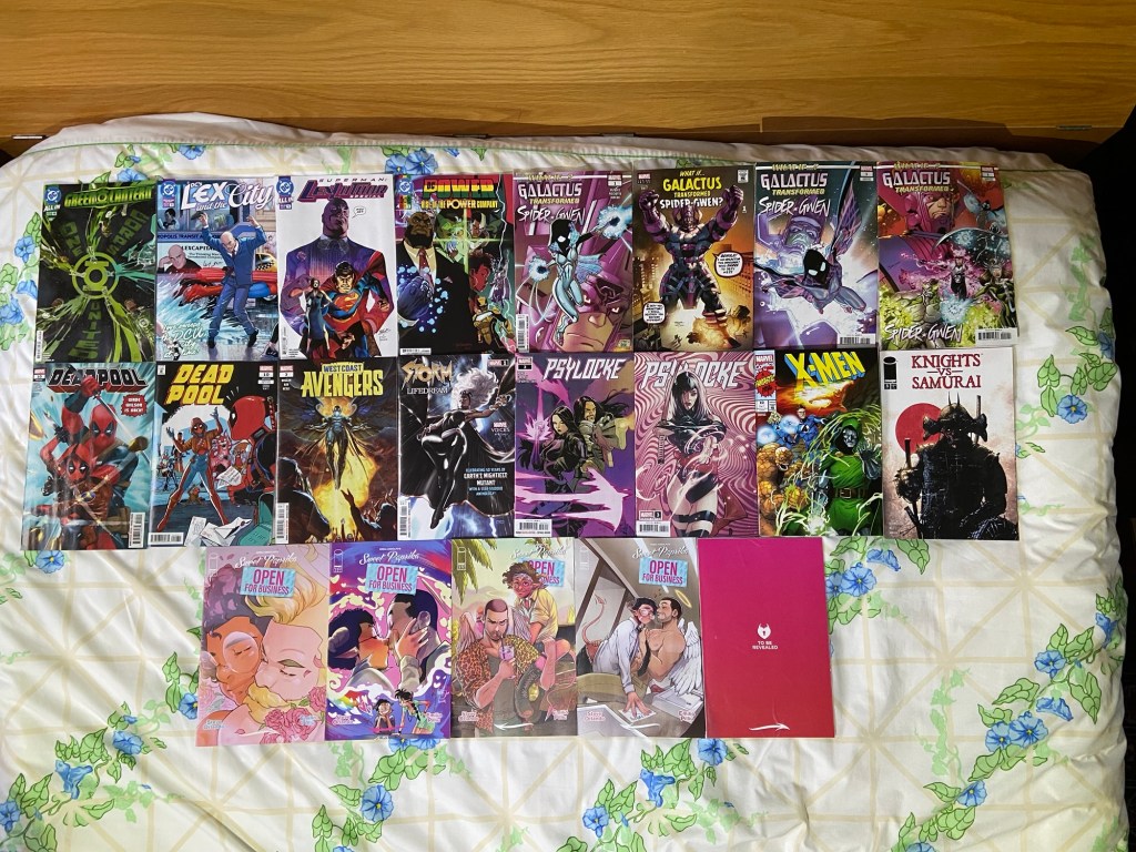 Okay. So, there was a shipping problem so most of the Marvel issues weren’t there. Just some of the variants were there. Though all the DC issues were there. The missing covers should be there next week or so. So that post of late issues will be similar to a normal post since it’ll be so many issues.