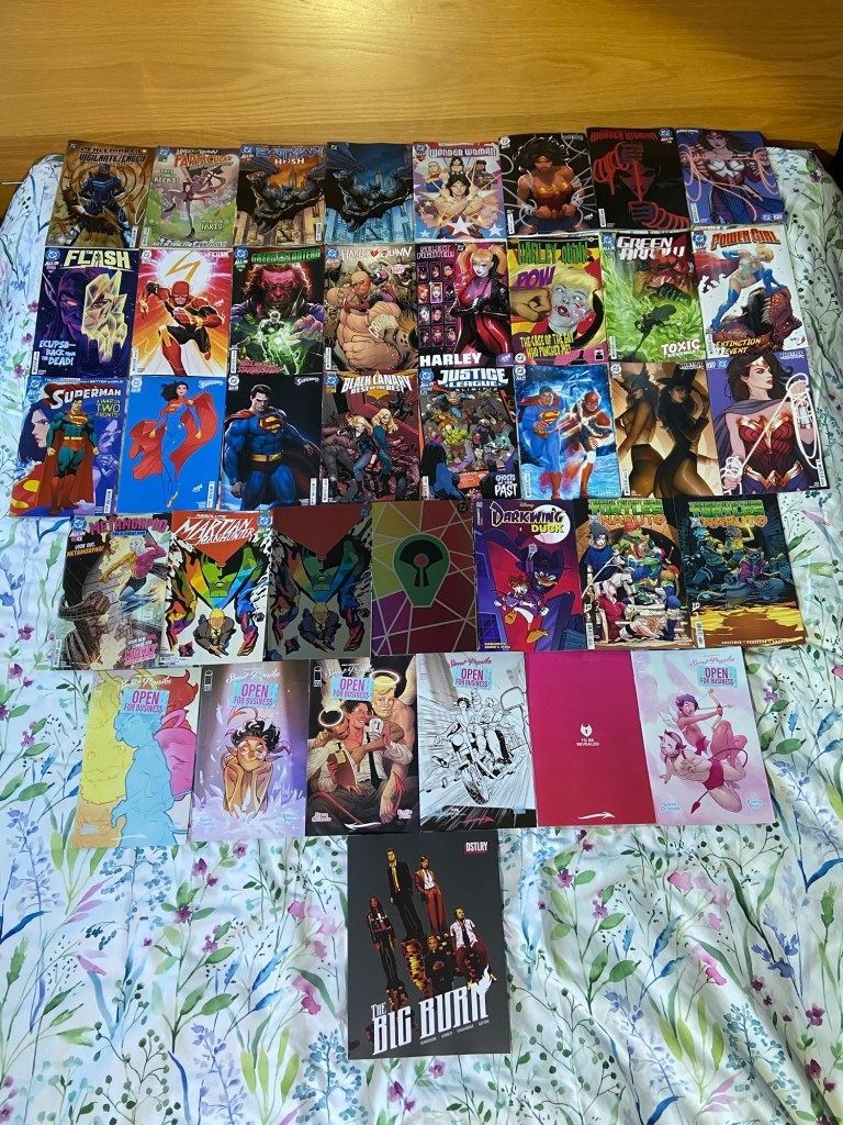 Peacemaker got a spin-off miniseries (not sure if it is connected to the show or just to help promote the show). Harley got a weird one-shot special which I probably won’t read, haha. The Hush event started in Batman. Flash continues to have Eclipso problems. I wonder who Starbreaker is. Power Girl has prehistoric problems. There seems to be two Canaries in Black Canary. JLU brings in some past villains. We got a new Absolute title focusing on its Martian Manhunter. And Sweet Paprika Open for Business dropped its next issue.
