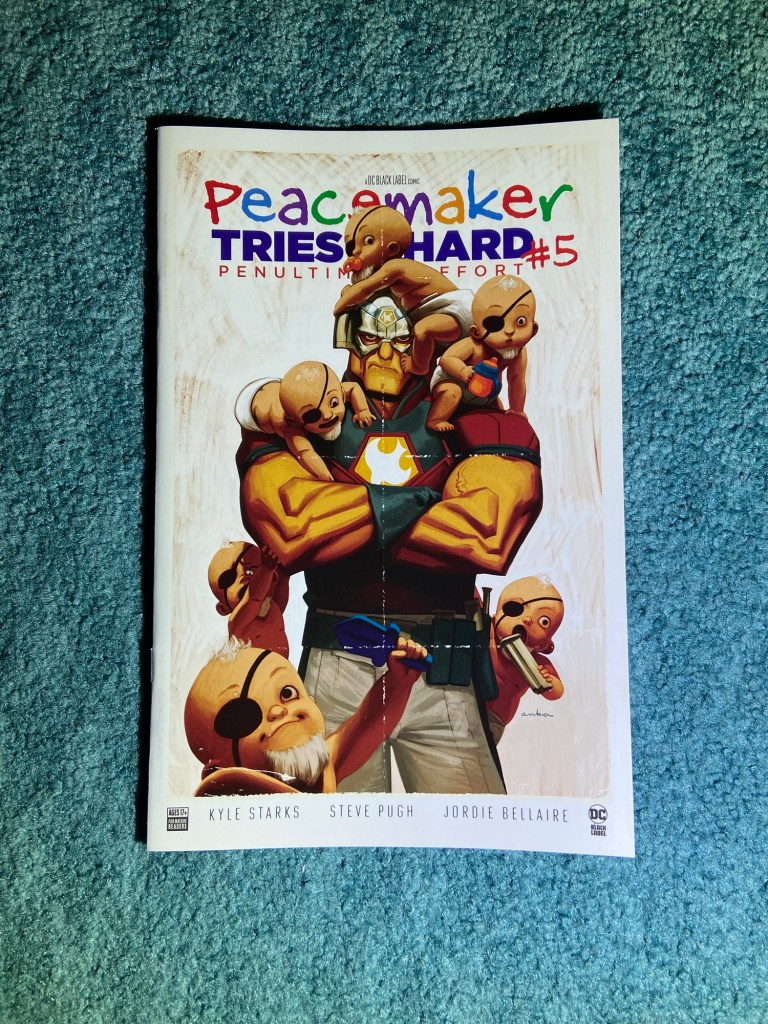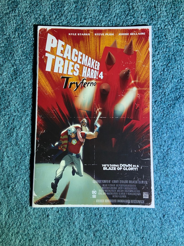 So the main covers for this Peacemaker miniseries are basically the same as these, but these are styled like movie posters and I love covers that are as such! These are all by Chris Anka.
