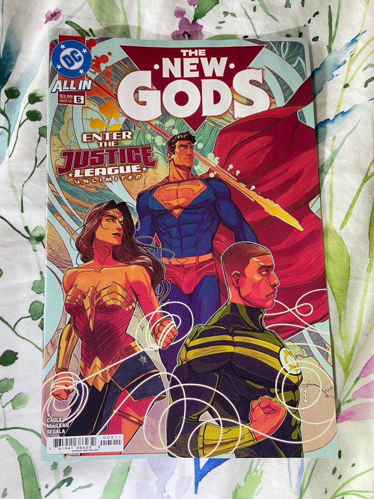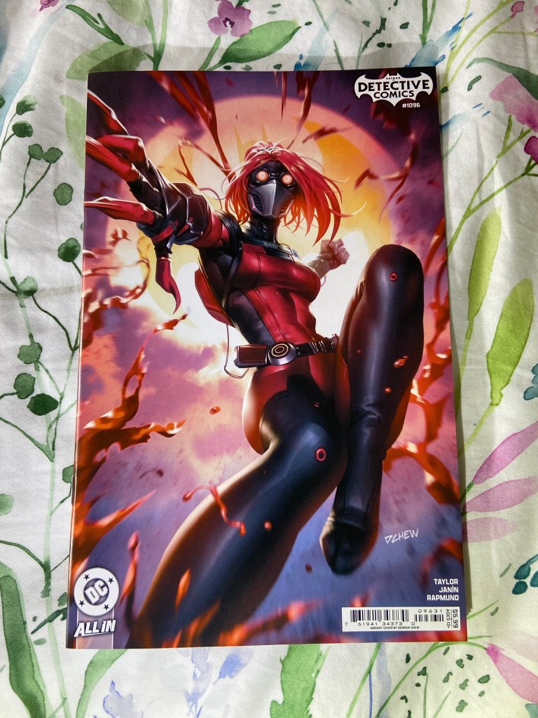 I’m not even sure what the character is on this Derrick Chew cover, but she looks great! Jorge Corona and Sarah Stern did a great job on this color-bleed Absolute Flash cover! Nimit Malavia brings us a colorful variant for New Gods. Sweeney Boo crafted a fun Zatanna cover. I had to get this crossover comic because of Darksied. And I always love seeing a David Aja cover!