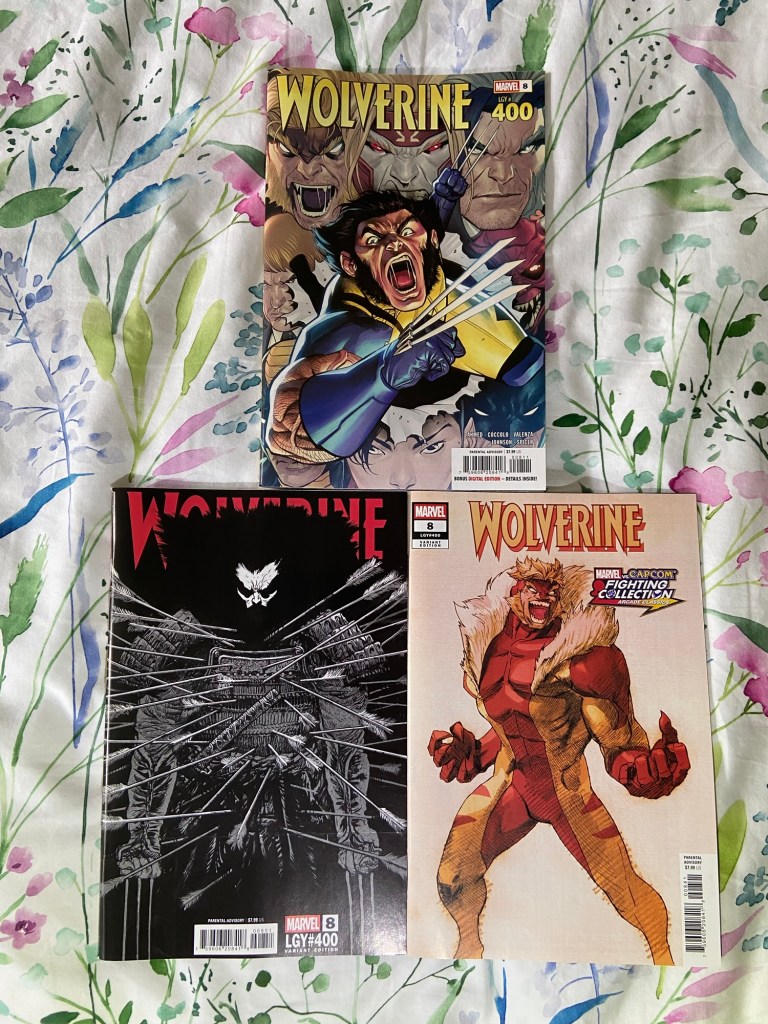 There were many to choose from for Wolverine’s 400th issue, and these are the covers I liked best. The main cover is so good! And the Samurai themed one by Daniel Warren Johnson is amazing! And of course, I had to get the Sabretooth one by Bengus!