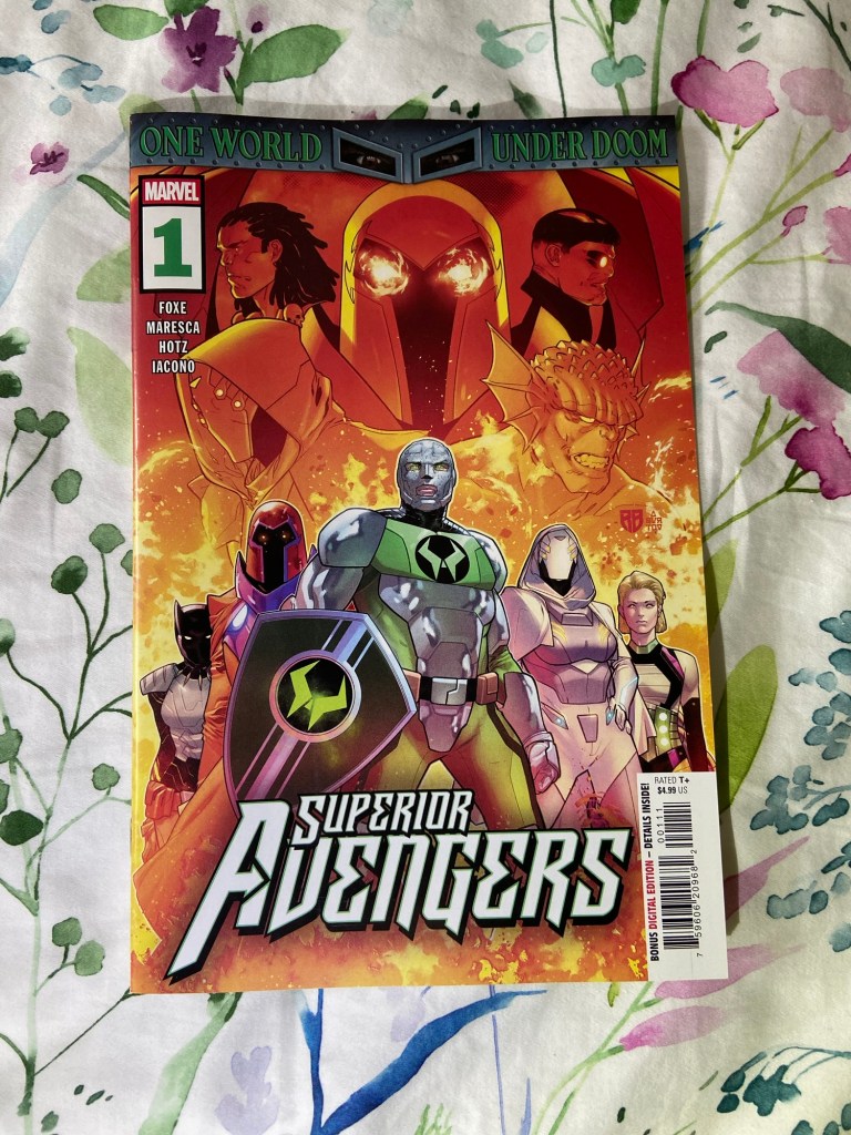 I think I’d added this Superior Avengers cover as a double for some other reason, but since I couldn’t remember why, I decided to get the copy just because I love the shades of orange in the background. And this Dan Mora homage variant is just stunning!