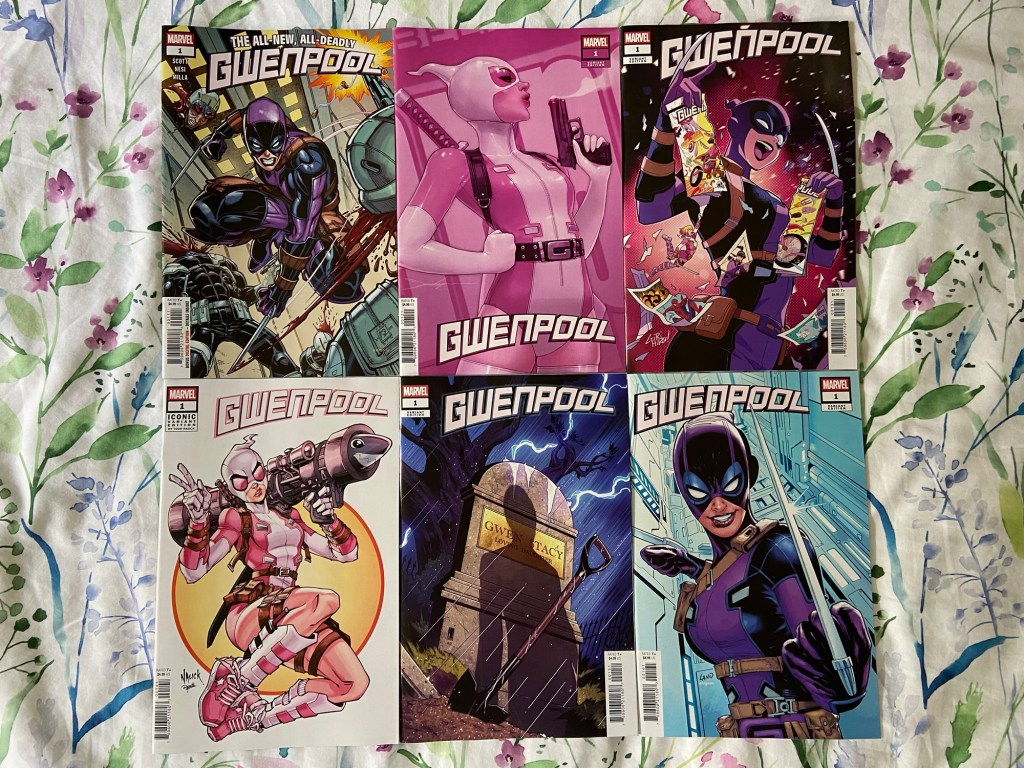 Mainly for this new Gwenpool character design, but also for our Gwen. The pink Lee cover is my favorite of the batch.