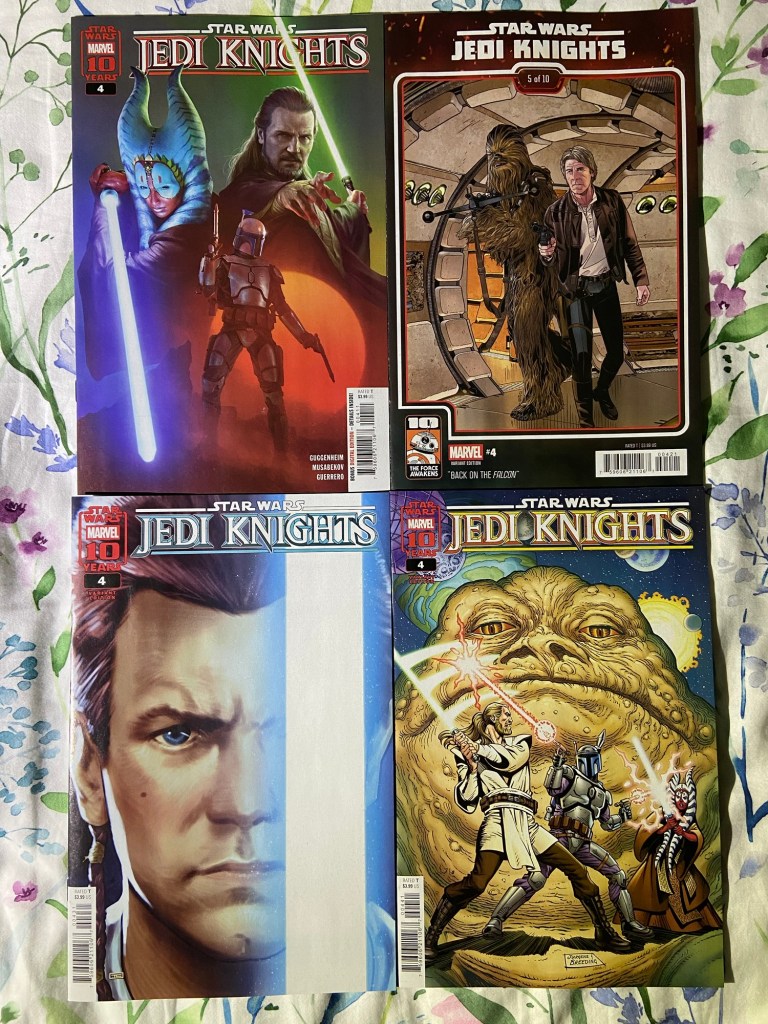 Love all these covers for Jedi Knights! The first, third and fourth are continuing the sets from all the issues, and the second one is another of the 10th Anniversary of The Force Awakens covers.