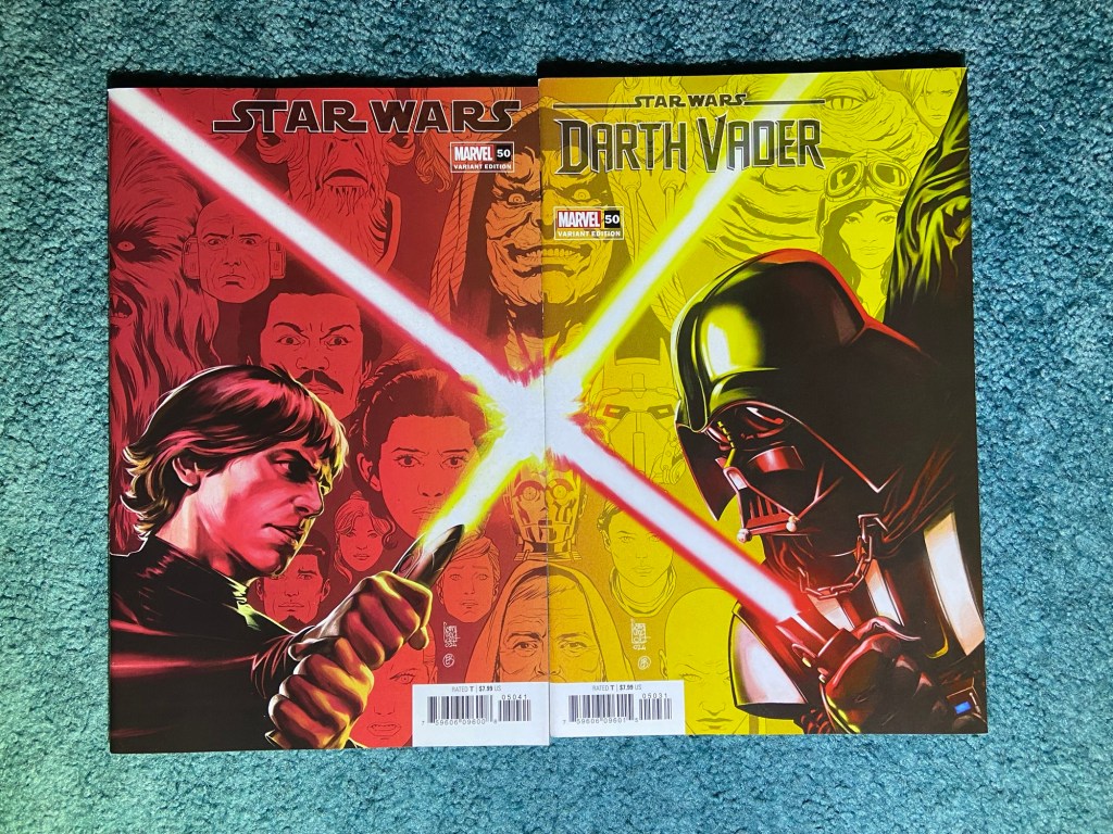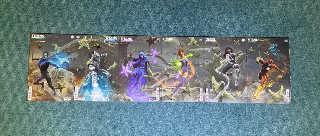 These designs were variants for each of these titles’ 50th issues. I like the characters from each title in the background of each cover.