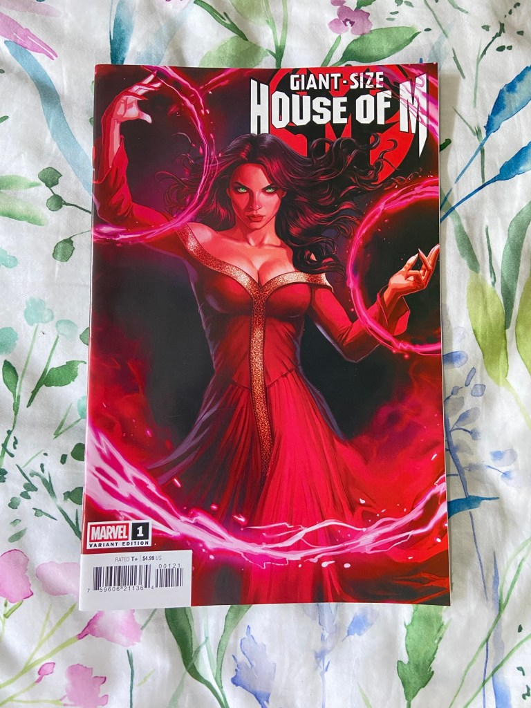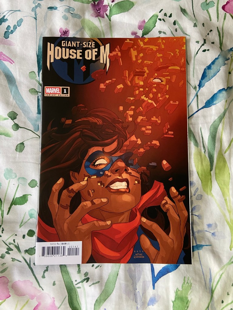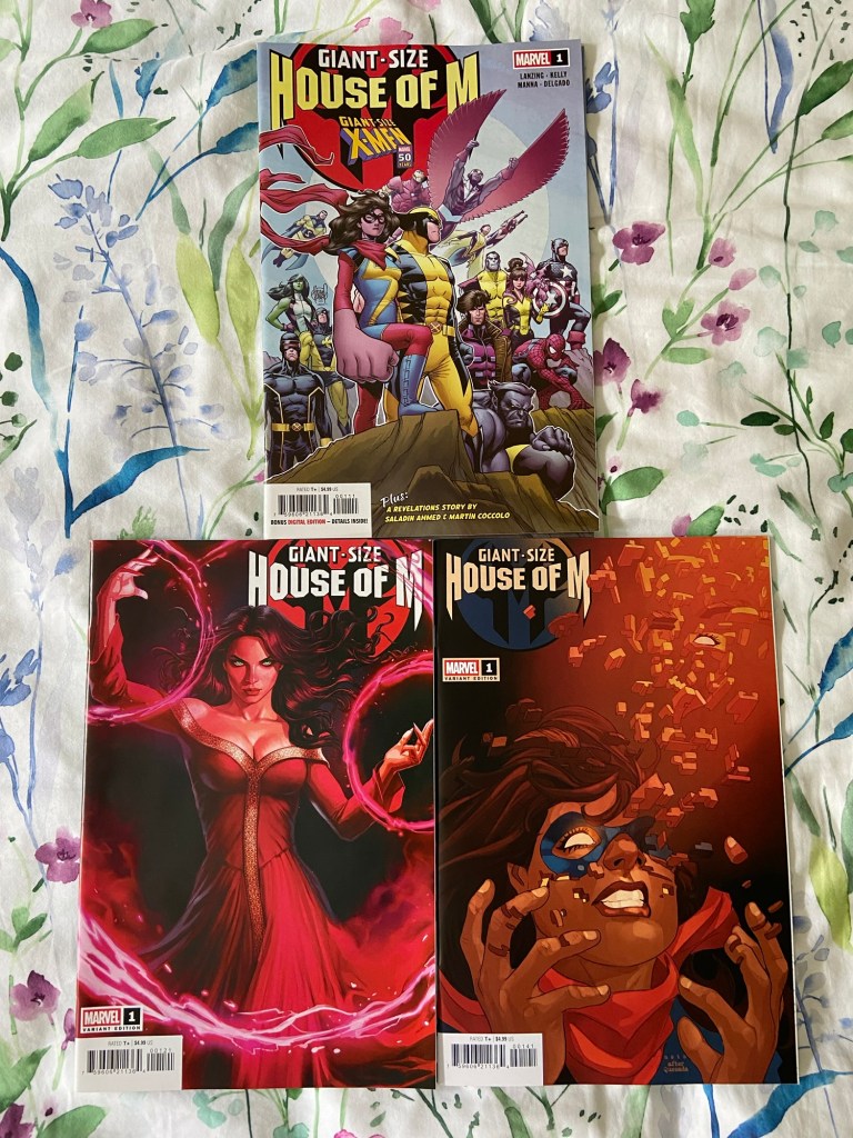 The next Kamala Giant-Size issue with these great covers! The main one of course the next homage cover. The second being a gorgeous one of Wanda. And the third one being an homage cover to the House of M #1 by Joe Quesada.
