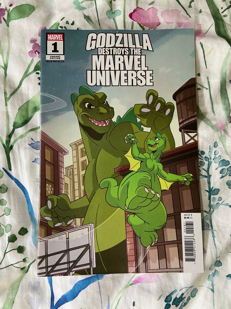 The wraparound main cover looks so good by Brooks! And I liked that we got a variant with the cartoon versions of those characters on it.