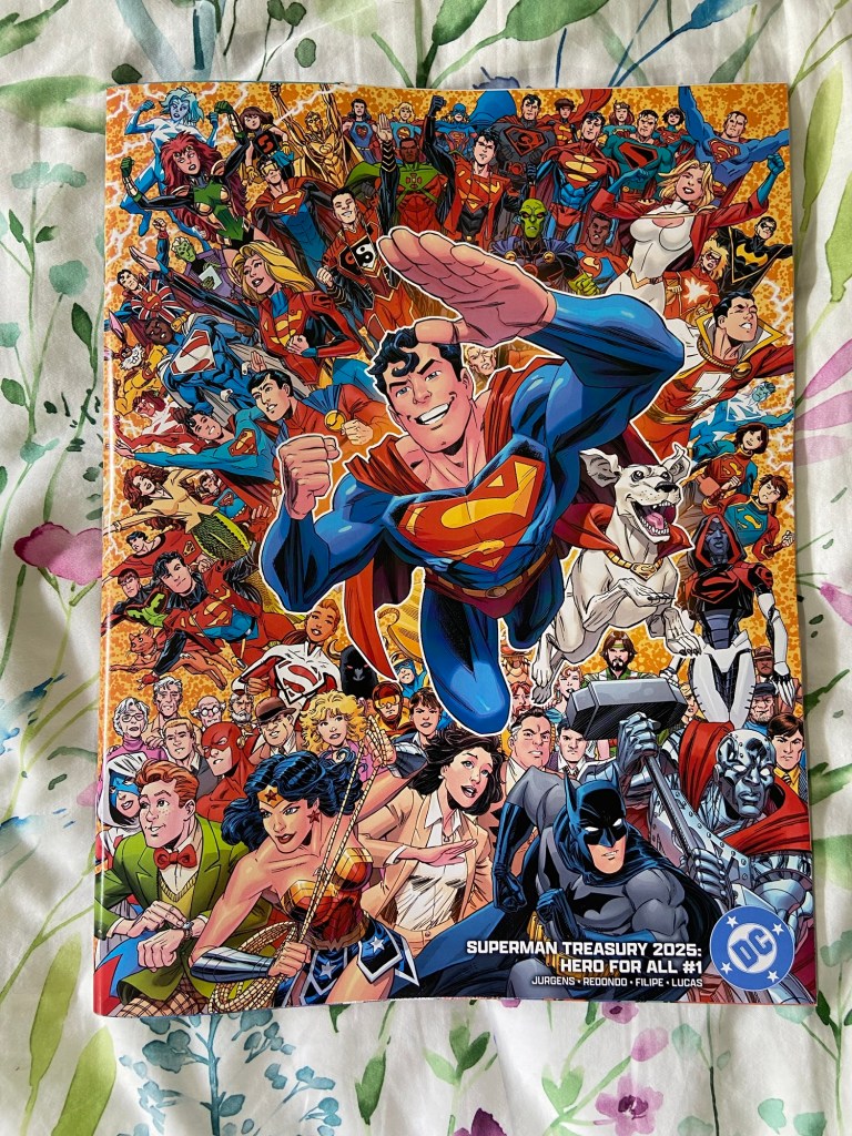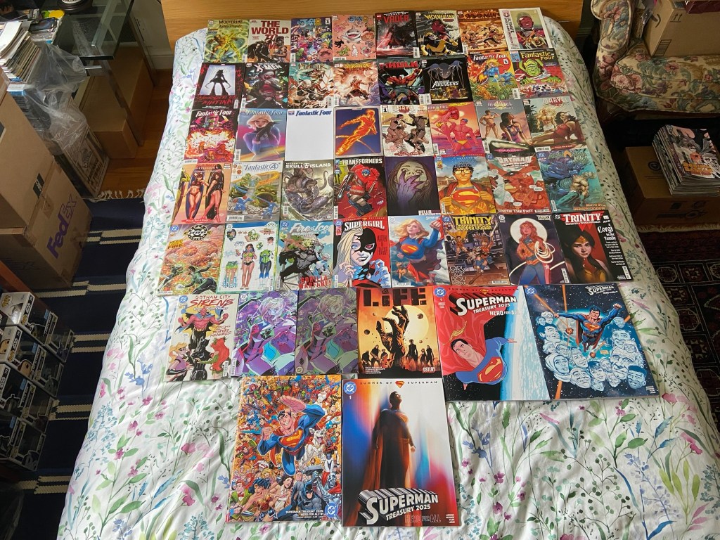 We got another Jeff title. Laura has a returning villain. We have a new character debuting in Uncanny X-Men. Fantastic Four started its new run just in time before the new movie comes out next week. We got a summer special from Marvel. We also got a tie-in one-shot comic for the Fantastic Four movie. It’s different than the previous tie-in comics from the MCU’s past, this one is an in-universe comic that the Future Foundation published. Since the movie is next week, I had to read this issue, it was great! The Return to Skull Island title finally debuted after a few delays. Mogo is on fire! Fire and Ice have a great ape problem. We got the next DSTLRY issue. And Superman got a huge treasury-sized issue. I already ordered some bags and boards for these issues. It’s always fun to see comics in large formats like this.
