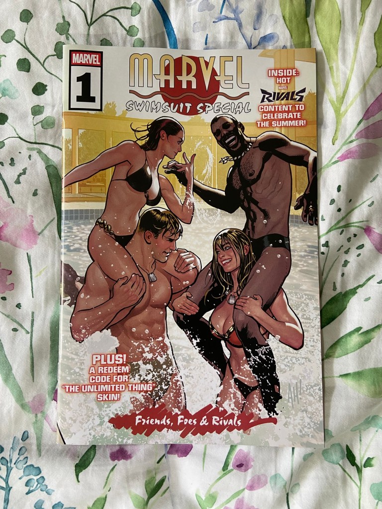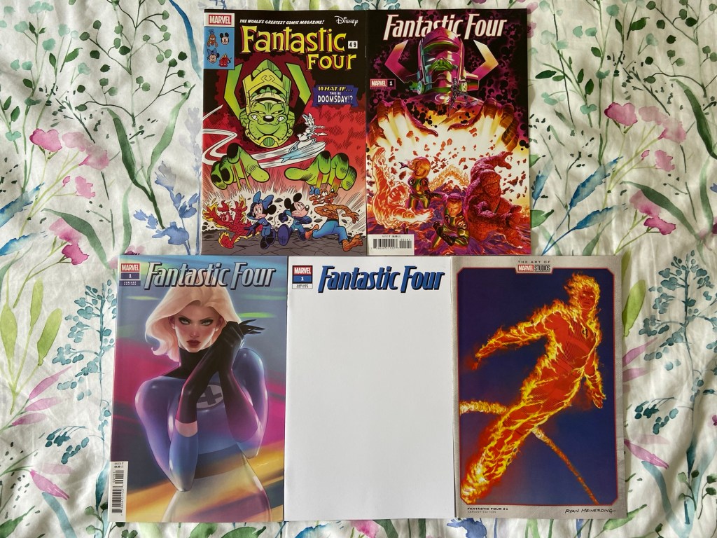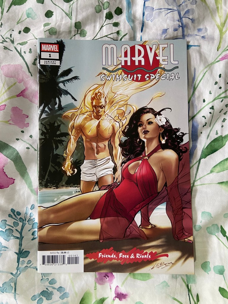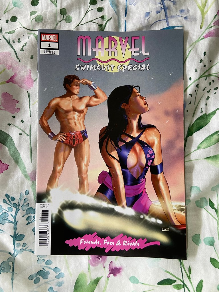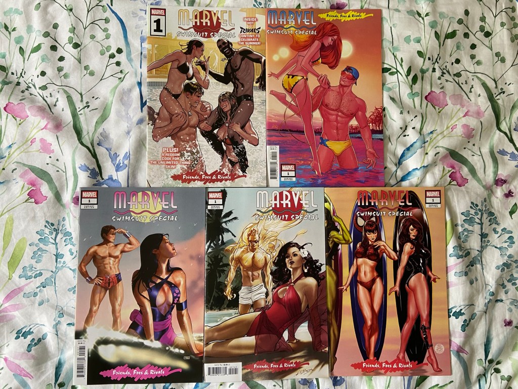 The main cover being a wraparound was nice. Adam Hughes did a great job. I love the Dauterman one too! The colors are fun. Clarke did a nice job with Peter and Kwannon. Jonny (I think?) and Wanda look great thanks to Villalobos. And I love that Brooks wraparound! It reminds me of a similar Super-family cover set. There were so many variants I didn’t get, but they all were great!