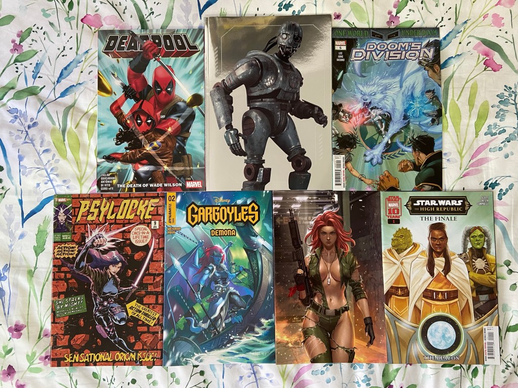 The most recent Deadpool volume, the next SWI issue, and some late comics.