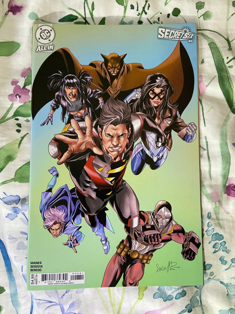 Now this is an odd cover. I loved seeing all these characters. And this was listed as a foil wraparound cover. But when I got it, the front was foil, but the back was not foil. I wonder if it’s a mistake. Funnily enough, I like the glossy back cover rather than the foil. But also, I don’t know if it was on purpose or not but the art itself didn’t seem like it was (for lack of a better term) High Definition, the images seemed out of focus. But I still enjoy this cover!