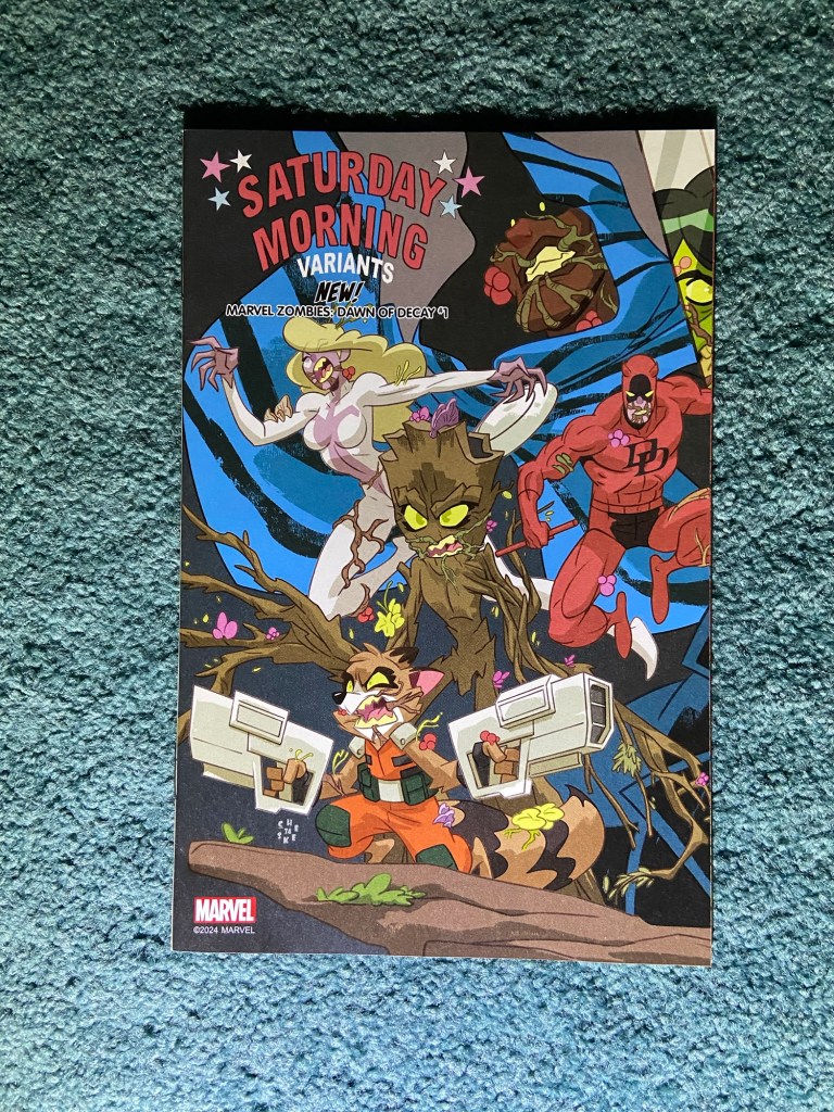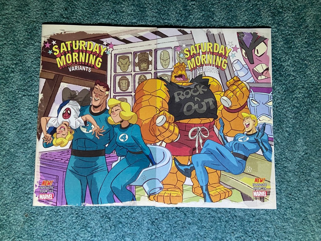 These are fun covers. There was a bit of misalignment and obviously the colors are not matched up at all. But I still like this image of Marvel’s First Family having fun while some villain is trying to get their attention.
