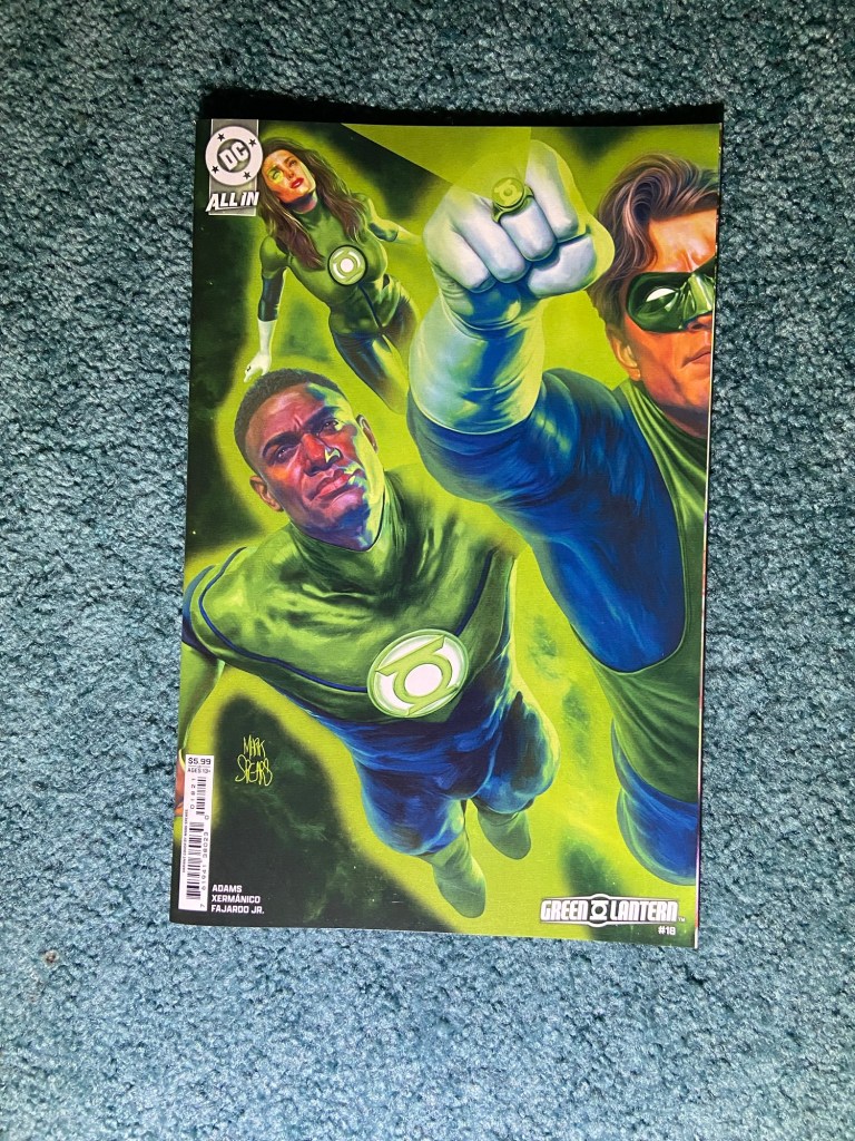 I love Mark Spears’ covers! Probably for similar reasons to why we all love Alex Ross’s art. The realism is so well-done! I would love something like this from him but with as many Lanterns on it as he could fit. Perhaps one set for each Lantern ring or one with all of them.