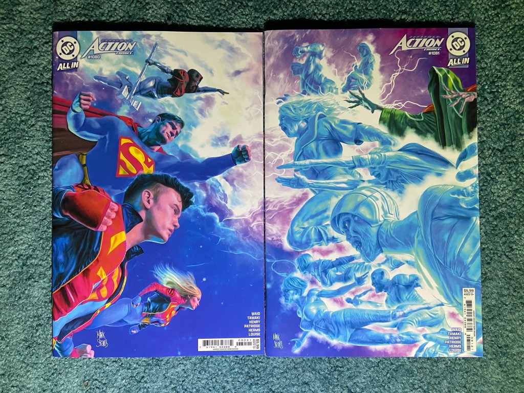 Such a fun set! If only there wasn’t a gap between those first two issues, not the color matches between covers being non-existent, nor the overlap issues. But other than the problems, the image itself is so great! A lot going on and all the characters are front-and-center!