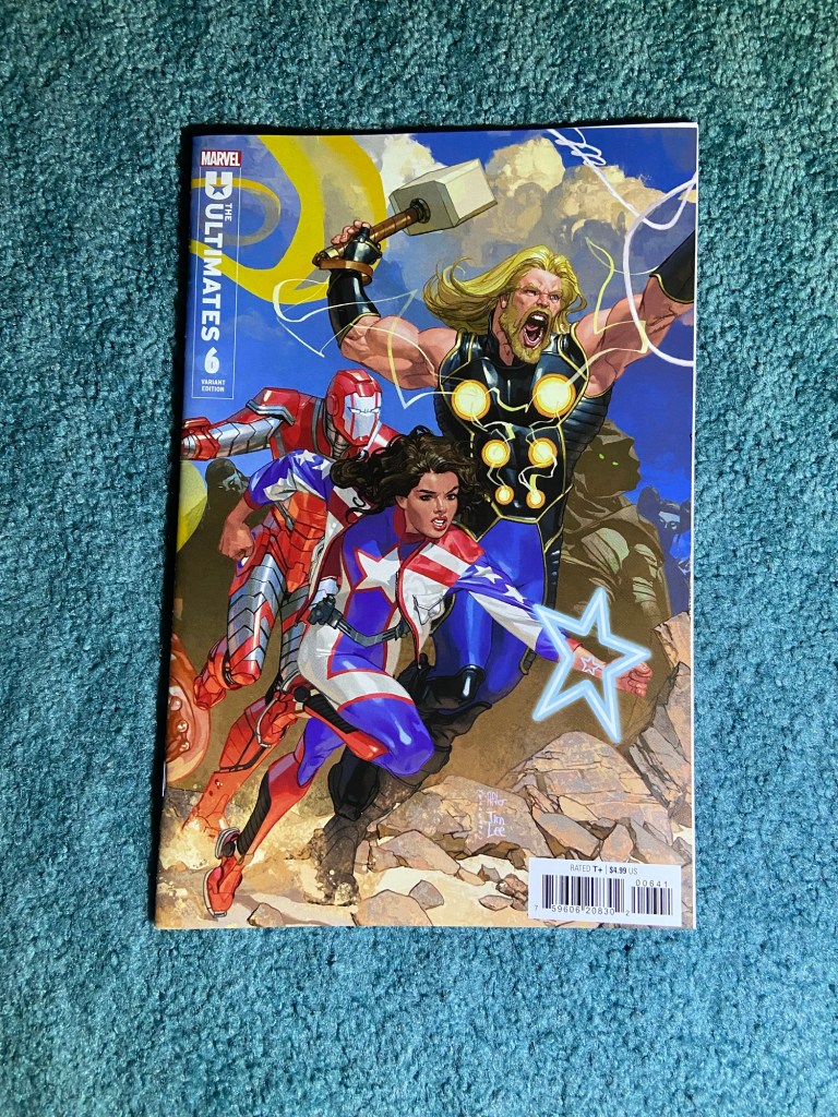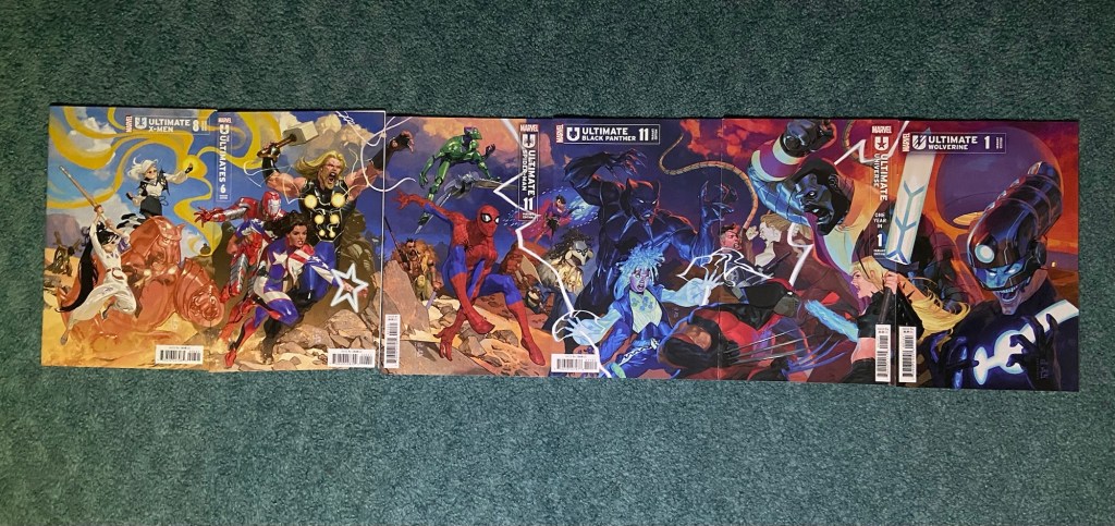 This next set is by Josemaria Casanovas. Since Peach Momoko’s Ultimate X-Men run started, I’ve been wondering what those characters would look like in normal Ultimates art styles, since Momoko’s style is so unique. Seeing all these characters in one image was great!