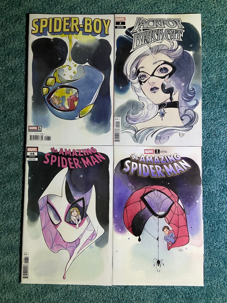 This Momoko set you’ll recognize from a previous collection post. For this set, this Peter Parker cover came out months after the other issues. So it’s not a set within a title, but it’s obviously the same style. They all look so good!! I’d love to see more Spider-characters in this design style.