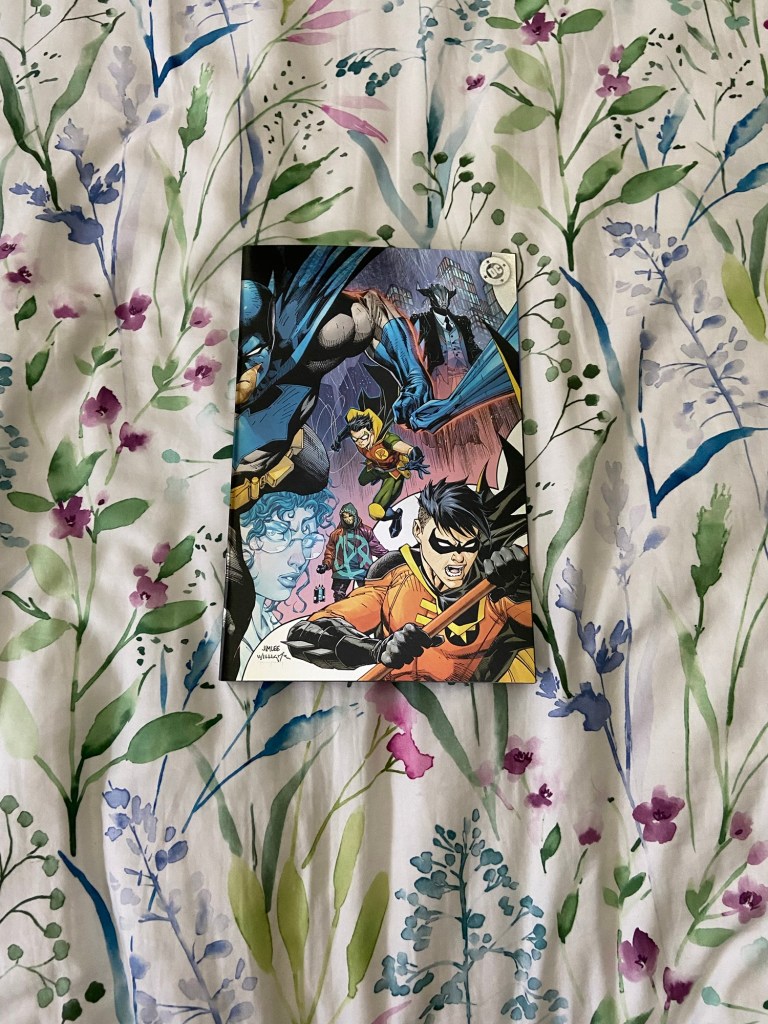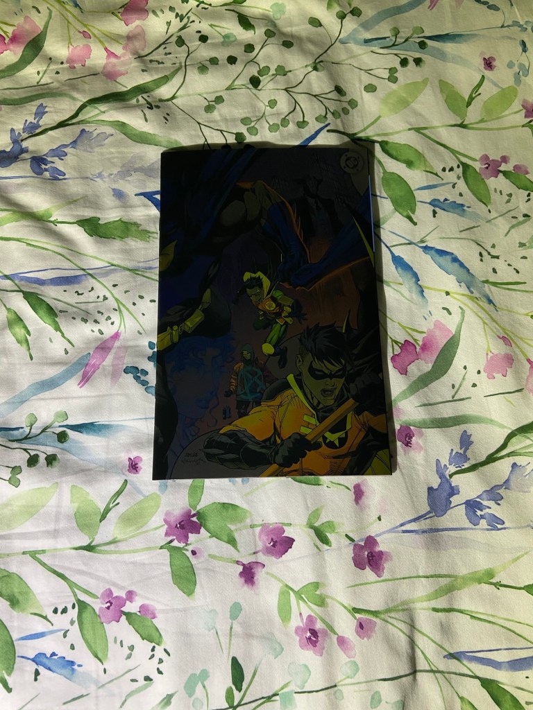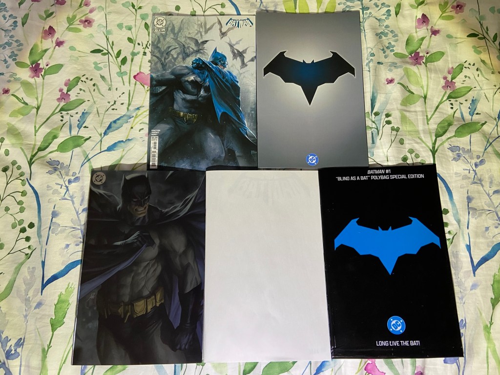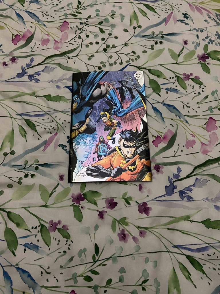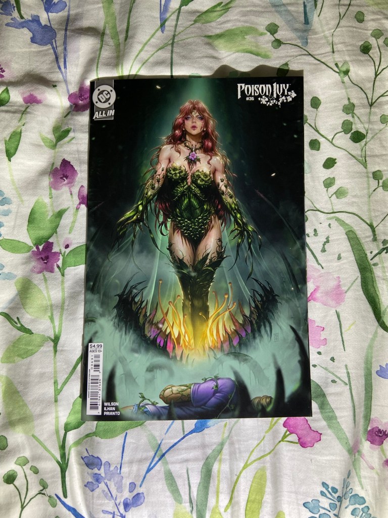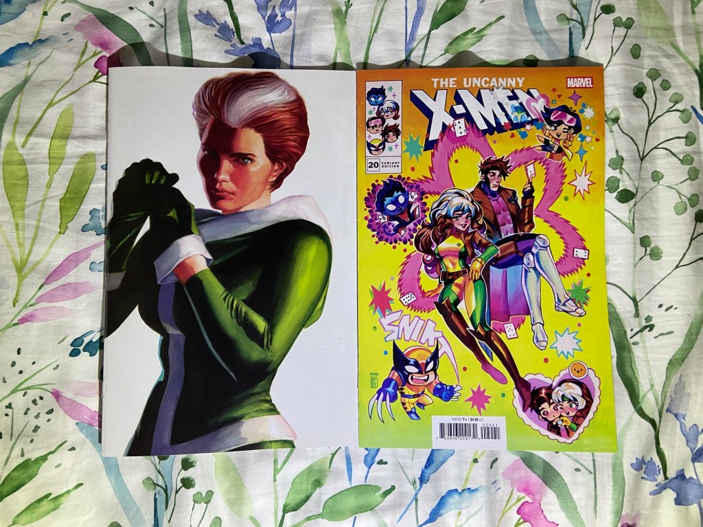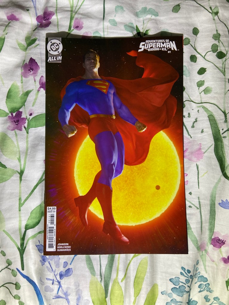 The first is by Gabriele Dell’Otto, I liked the blue being accentuated and the bats. The new logo is cool. And I was happy to see an Artgerm cover and a wraparound at that! And the cover I got in the bag was the foil variant of the Jim Lee cover.