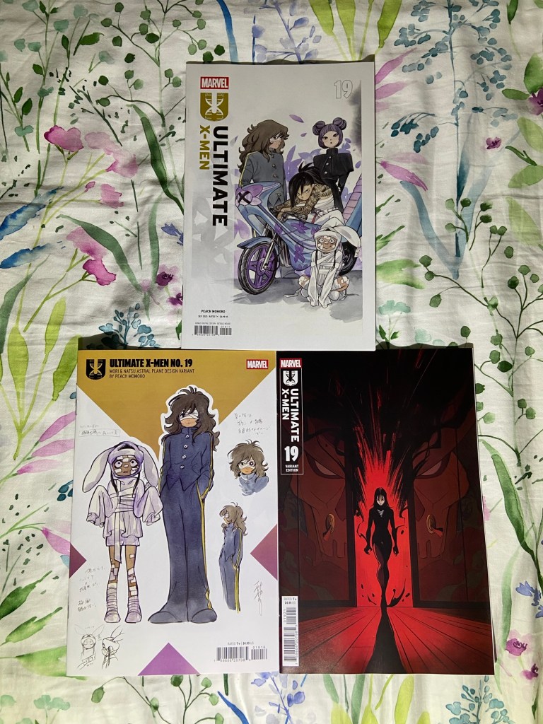 Another issue where there were many variants. The first here is the main cover. The second is the first of the upcoming Stitch variants. And the third one is a fantastic origin themed one by Lee Bermejo.