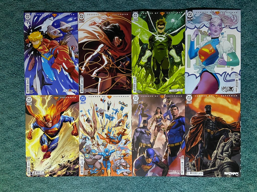 Various artists helped bring about the Summer of Superman in celebration of the movie having been released in July. These covers show various characters dressed in versions of Superman’s costume in their own style. I thought it was each character having his powers, but they all seem to have their own powers on all the covers.