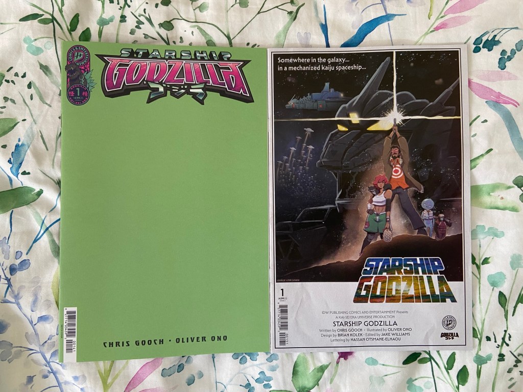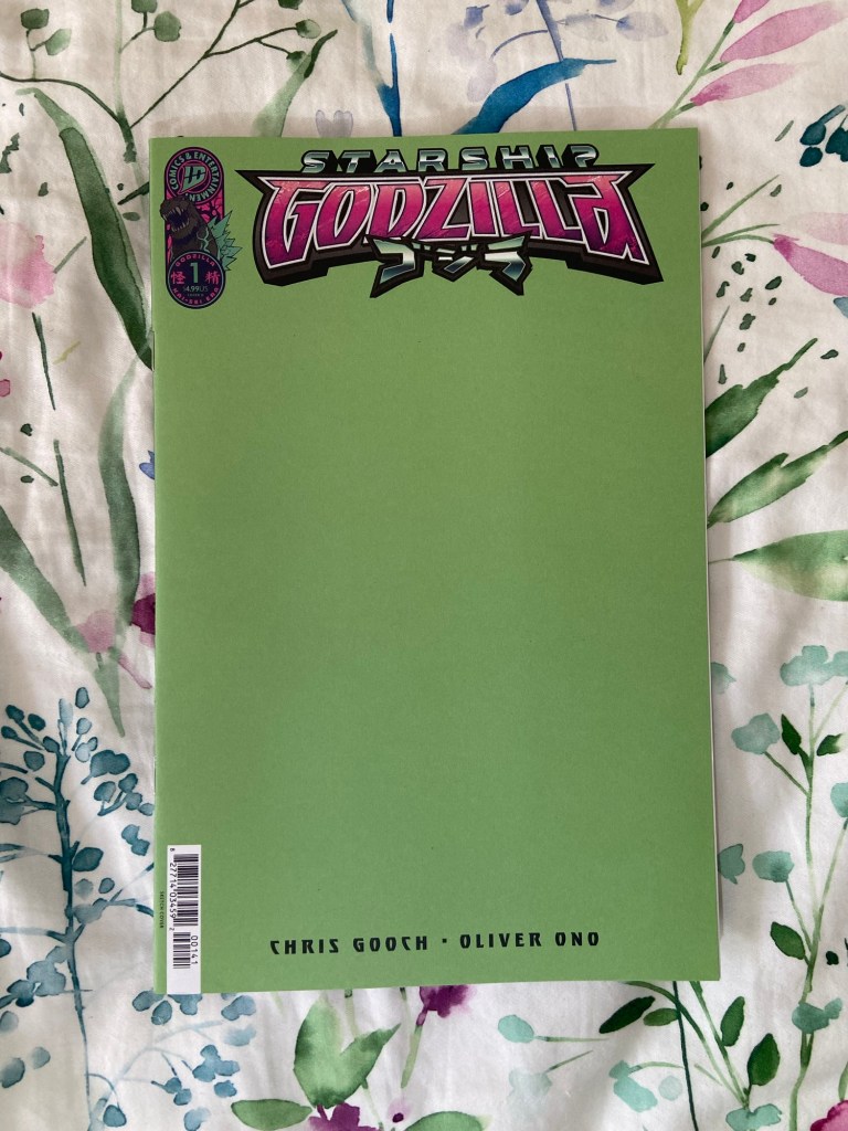 It’s intriguing that the blank is green and not silver since this issues stars Mechagodzilla. And I love this Star Wars poster homage variant!