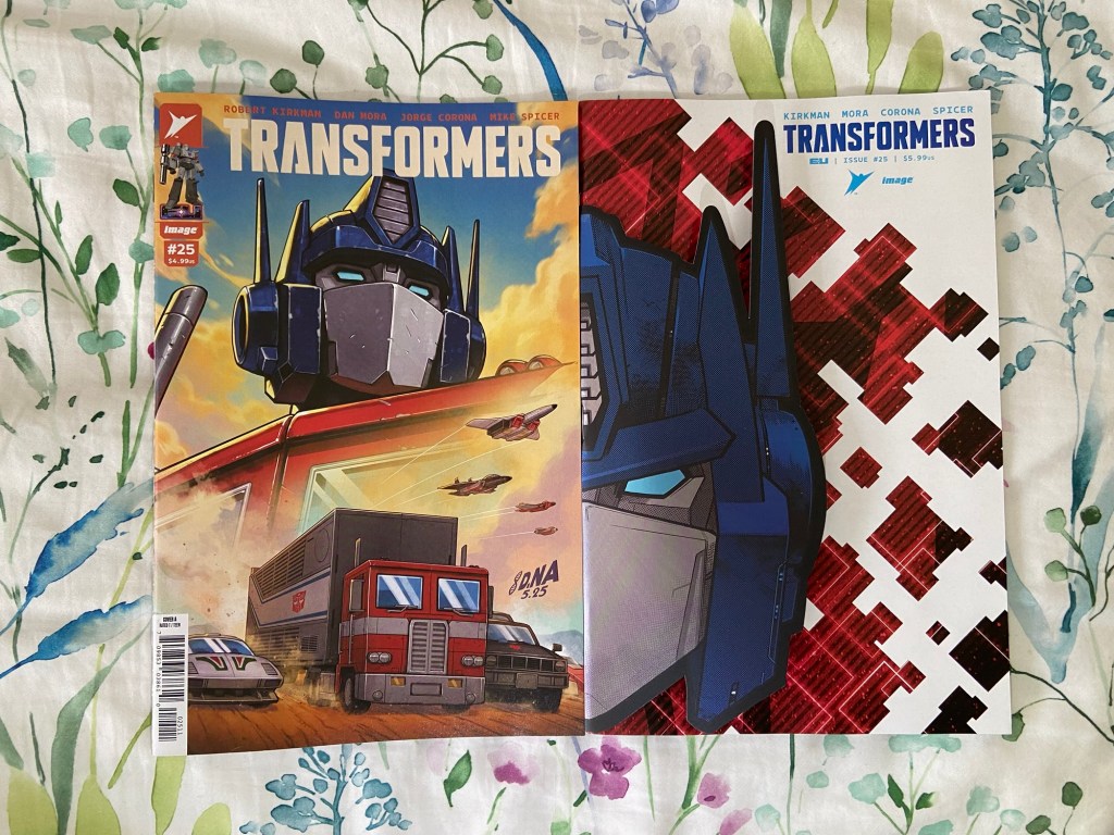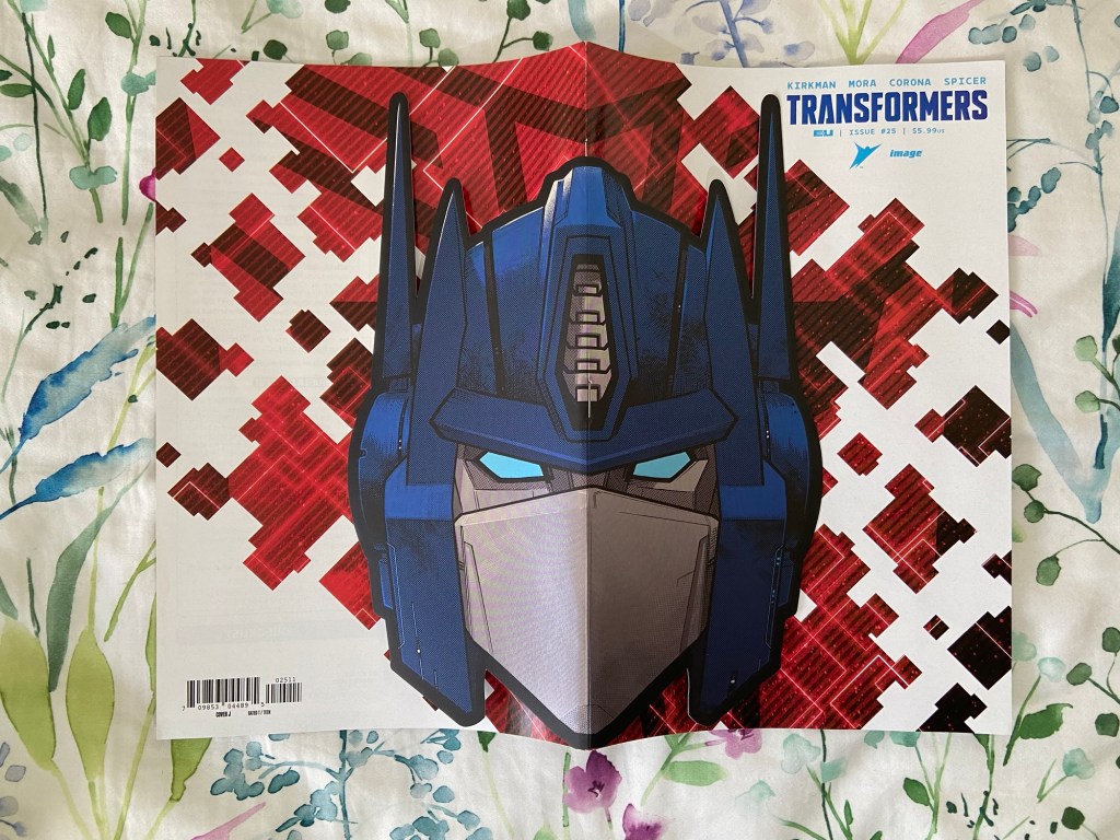 I’m happy that David Nakayama is doing the main covers for this new Transformers arc. And the other variant is a die-cut mask variant.