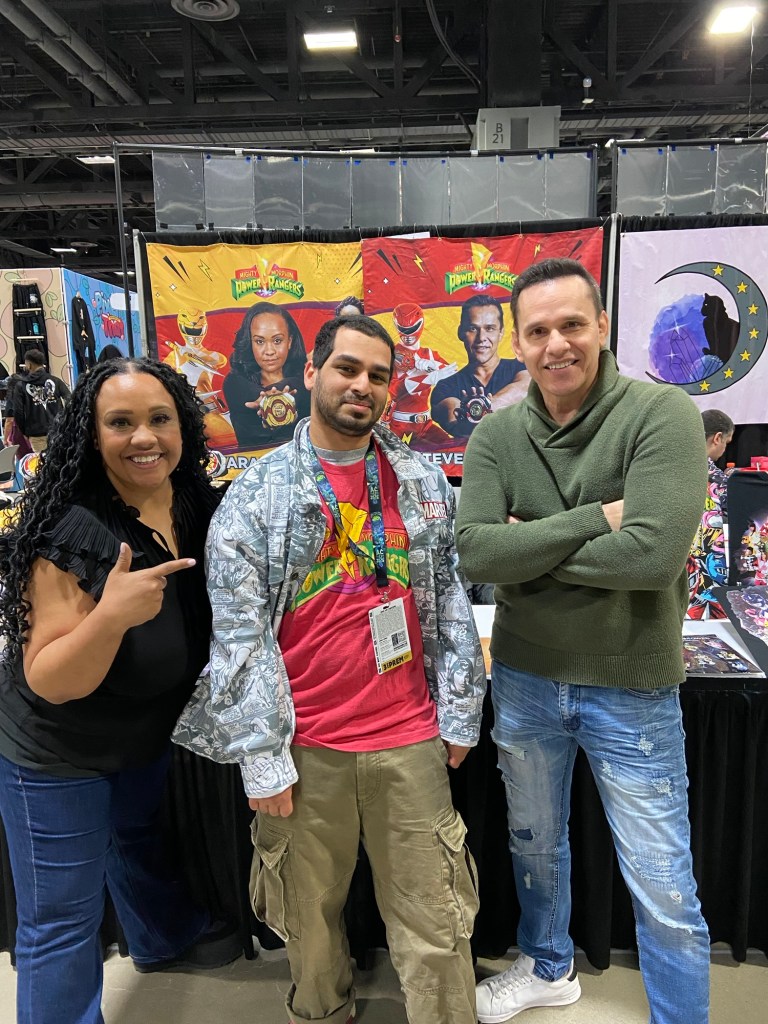 Last night I realized that there were 2 power Rangers actors who I didn’t know were at the con this year again. I knew about two beforehand. The two I hadn’t known about were two if met last year on the Sunday, so I didn’t have anything to be signed. I met Steve Cardenas (the second Mighty Morphin Red Ranger/Blue Zeo Ranger, Rocky) and I mentioned last year. He was happy that I was able to see them again this year. I got him to sign the item I brought and then we waited for Karan Ashley (the second Yellow Mighty Morphin Power Ranger, Aisha) so we could have a photo with the three of us. I also mentioned to her about meeting her a few years ago and she remembered the event. It was nice talking to them. He also mentioned that there were two Wild Force Rangers here too. So now I had more people to meet!