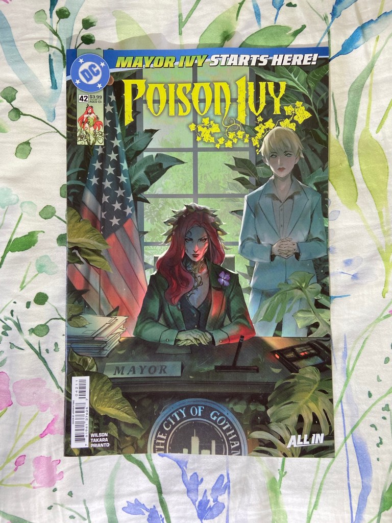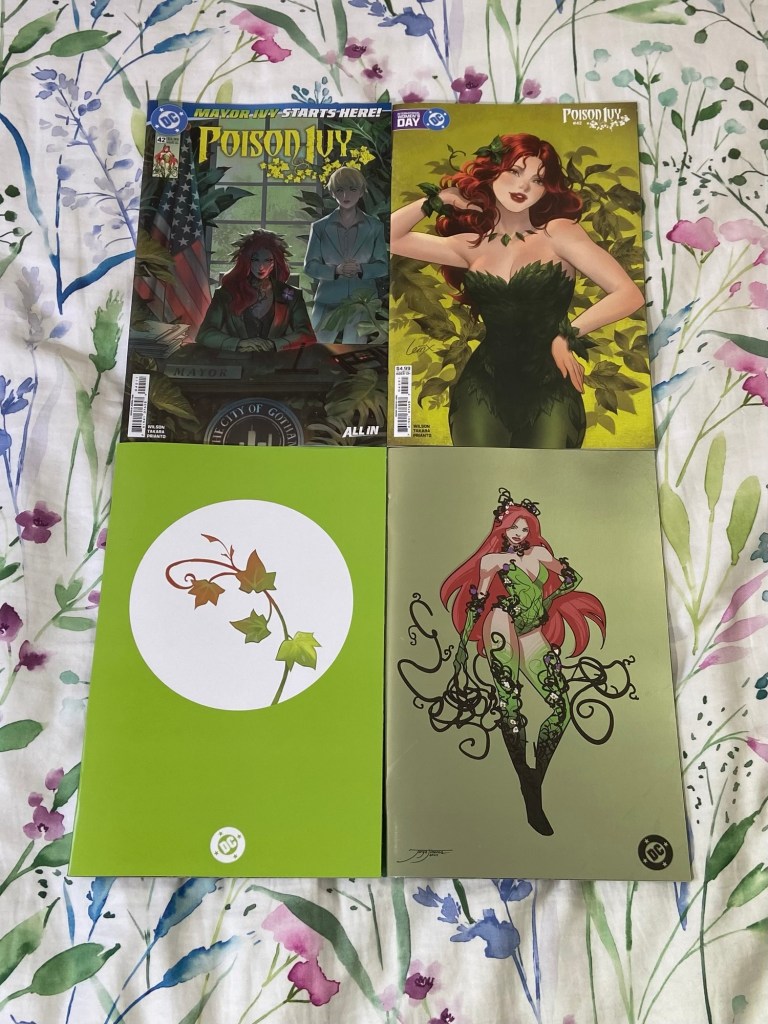 Jessica Fong does such a good job on these main covers for this arc. Pamela looks great at the mayor’s desk. Leirix’s Ivy on the first variant. I guess they just made a vine of Ivy for Pamela’s logo? And Jorge Jiménez did a set of foil covers themed on the characters from the corner box. This Ivy one looks great!