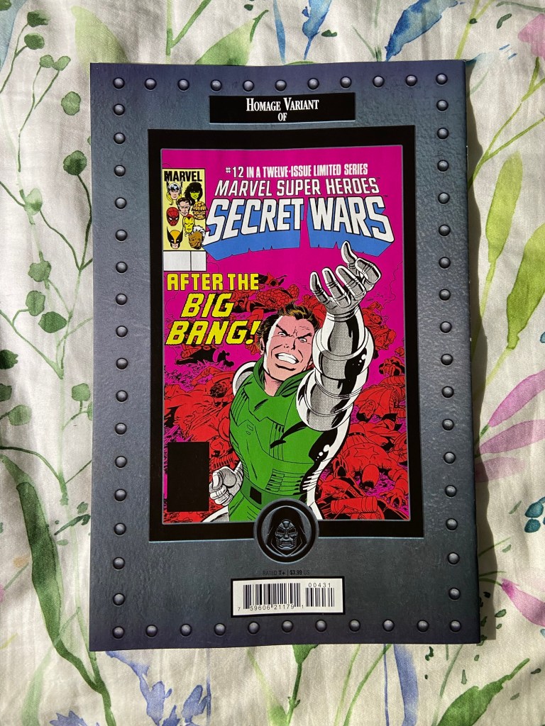 The main cover has the Vishanti on it, which is awesome. The next one is the Dauterman variant. After that is an homage variant to the original Secret Wars #12 (1984). The last one is a gorgeous one by Alex Maleev.
