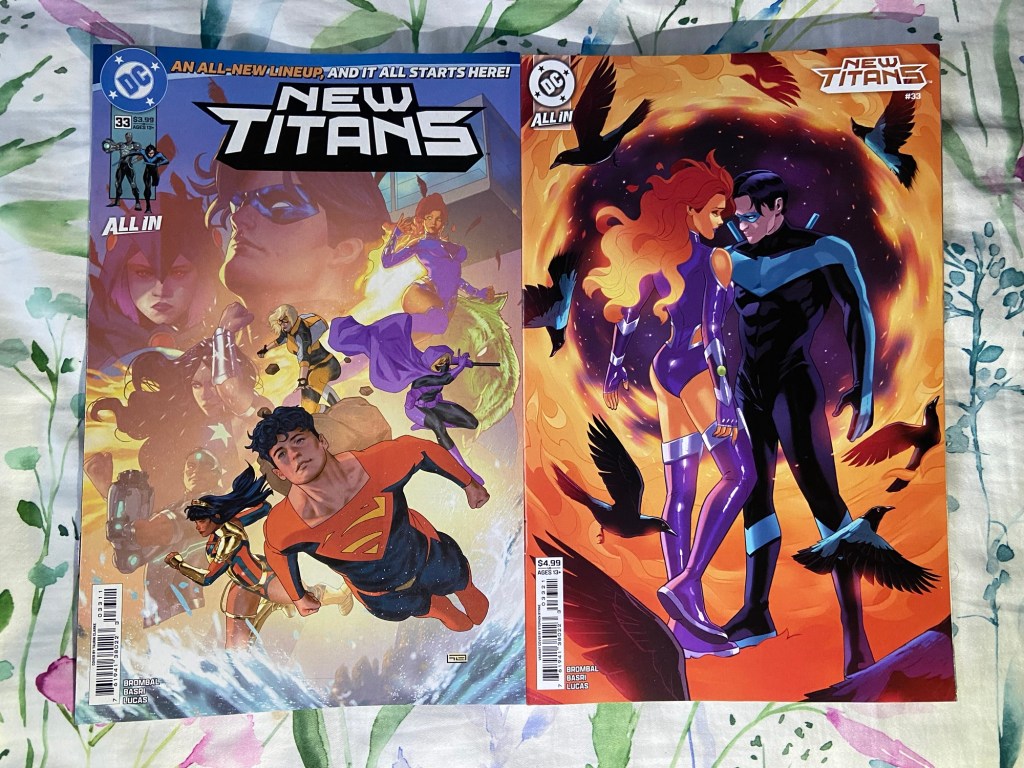 Taurin Clarke did such an amazing job at the main cover for this Titans issue. I don’t think that I’ve seen a Stephen Byrne cover before, I love this cover of Starfire and Nightwing.