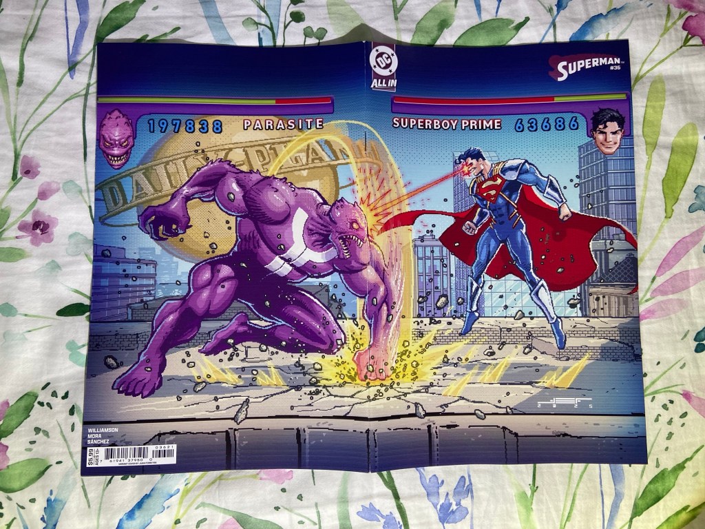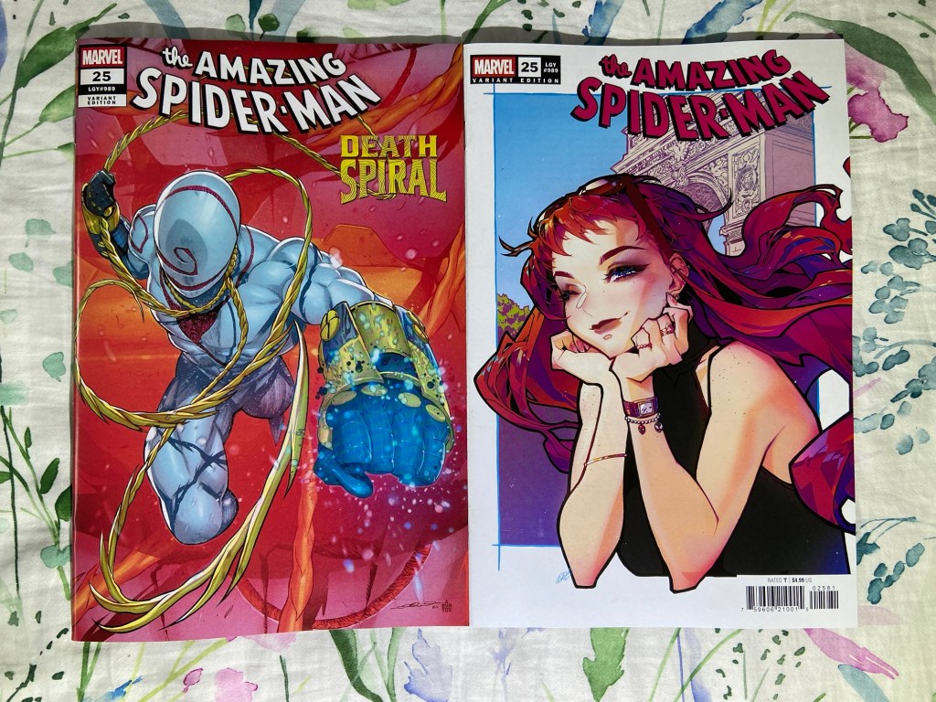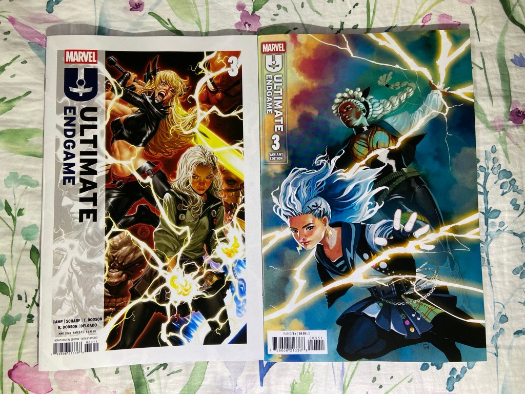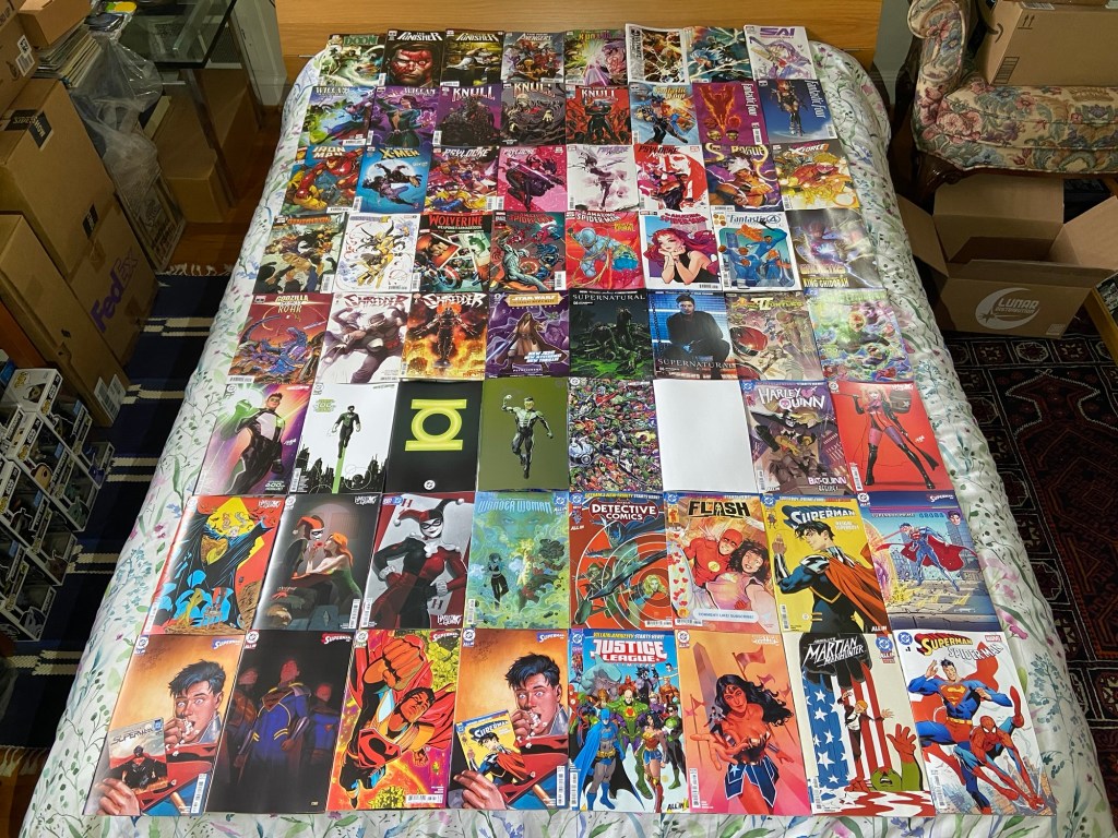 Jigsaw showed his, uh, face, in this Punisher issue. Ultimate Endgame continued. Invincible Woman’s reign of terror continued. The mystery behind Kamala’s next death continued in Inglorious X-Force. Death Spiral continued. We got our next MCU tie-in with Fantastic Four First Foes. We got a new High Republic miniseries started with Pathfinder. Green Lantern got to its 600th issue! Superboy-Prime took over the Superman comic. The villains joined the Justice League in JLU. And we got the next DC/Marvel crossover issue with Superman/Spider-Man 1. Now, there are a lot of variants that I got, but just the variants alone will add $100 to my receipt, so I’m going to wait till May to bring them home. So, you’ll have to wait to see which of the many many variants that I got.