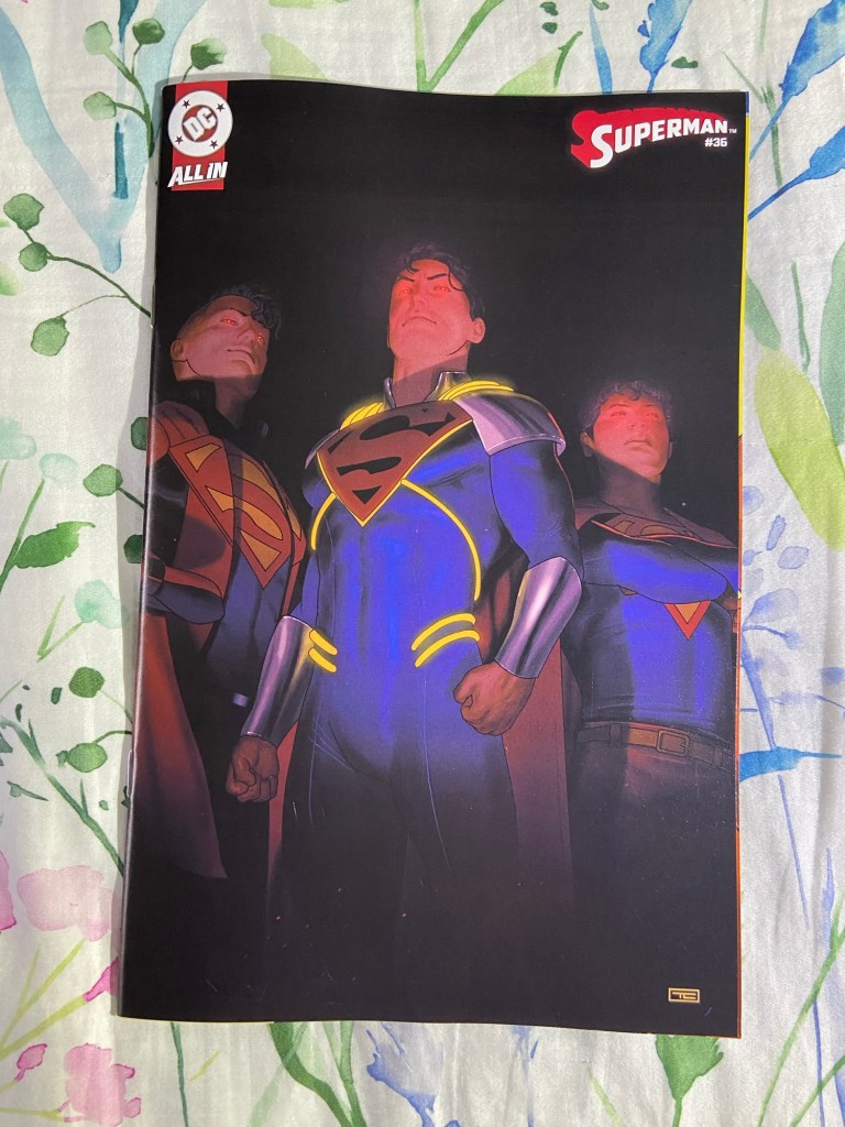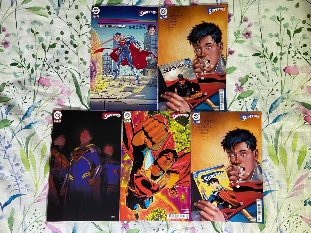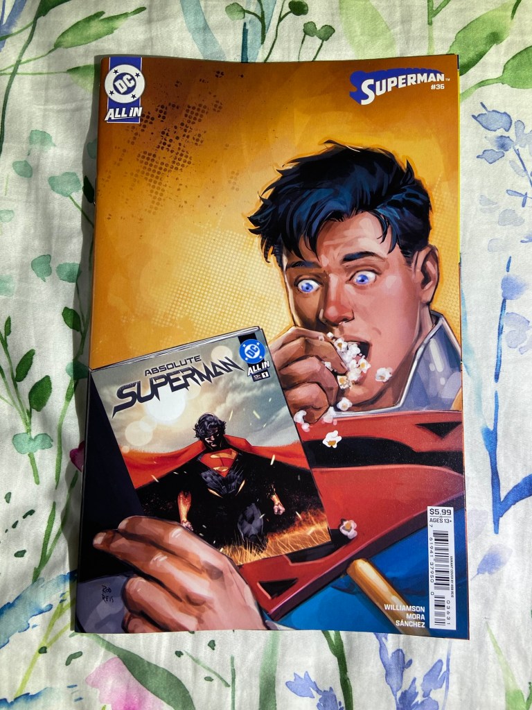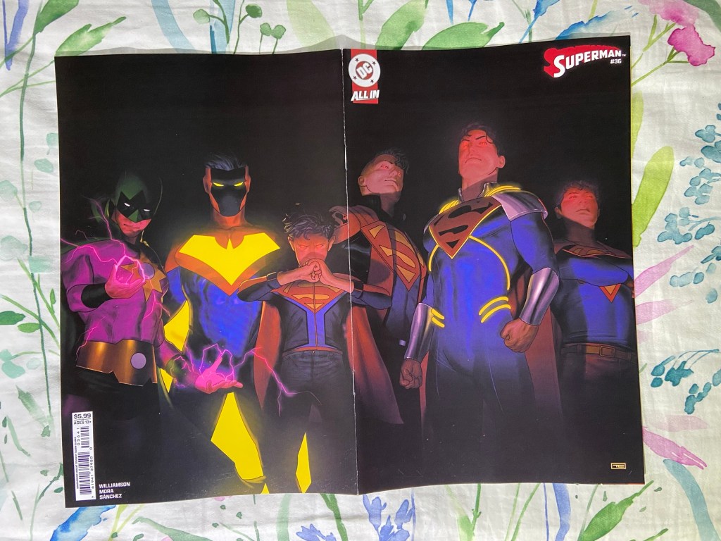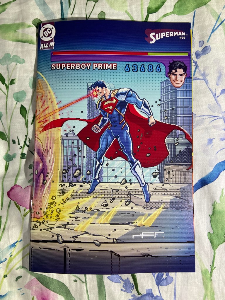 Jigsaw showed his, uh, face, in this Punisher issue. Ultimate Endgame continued. Invincible Woman’s reign of terror continued. The mystery behind Kamala’s next death continued in Inglorious X-Force. Death Spiral continued. We got our next MCU tie-in with Fantastic Four First Foes. We got a new High Republic miniseries started with Pathfinder. Green Lantern got to its 600th issue! Superboy-Prime took over the Superman comic. The villains joined the Justice League in JLU. And we got the next DC/Marvel crossover issue with Superman/Spider-Man 1. Now, there are a lot of variants that I got, but just the variants alone will add $100 to my receipt, so I’m going to wait till May to bring them home. So, you’ll have to wait to see which of the many many variants that I got.