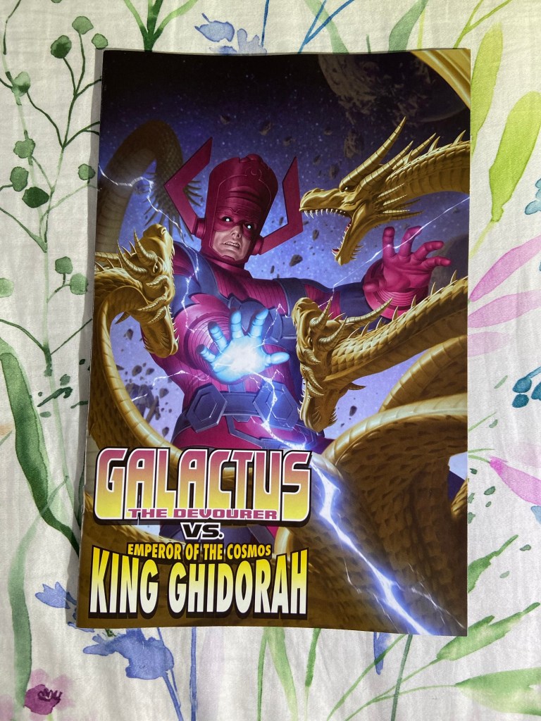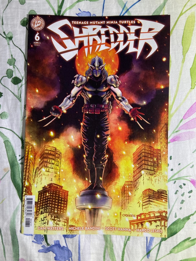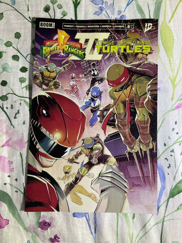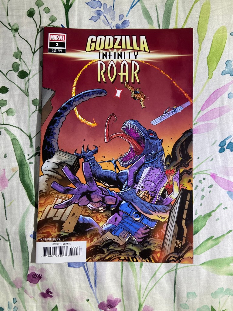 Taurin Clarke gave us an amazing variant of King Ghidorah battling Galactus! And Godzilla is battling Galactus on this Justin Mason variant. Then there’s the next Shredder cover. And then I really liked the main cover for MMPR TMNT III 5 by Alessio Zonno.