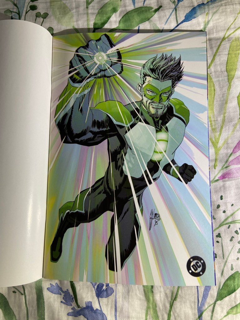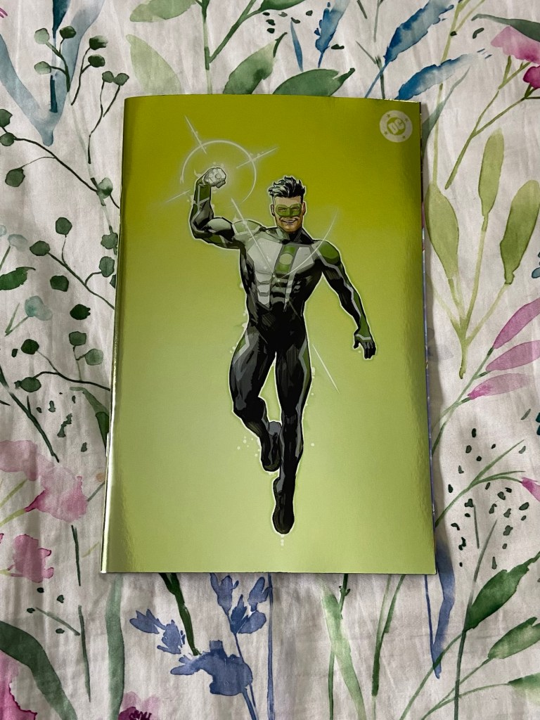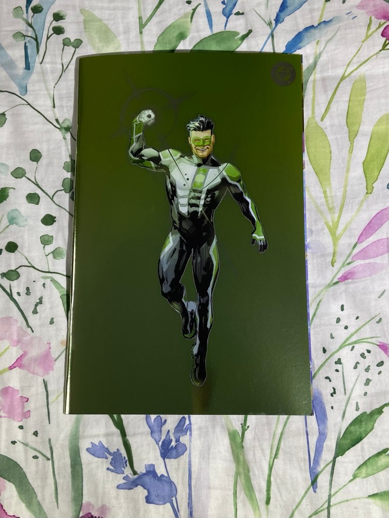 The first variant is of the brand new costume design for Kyle Rayner designed by David Nakayama! Then is the Aja variant. Then the symbol variant. Xermànico also did the corner box foil variant next.