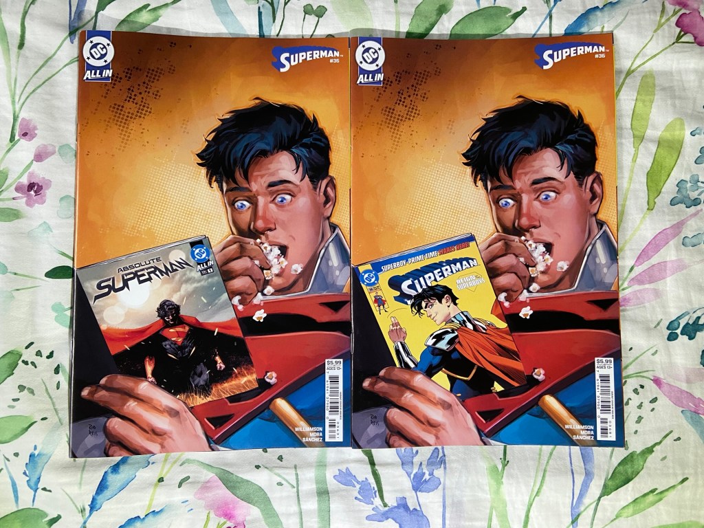 And Rod Reis gave us two variants with Superboy Prime reading two different comics.