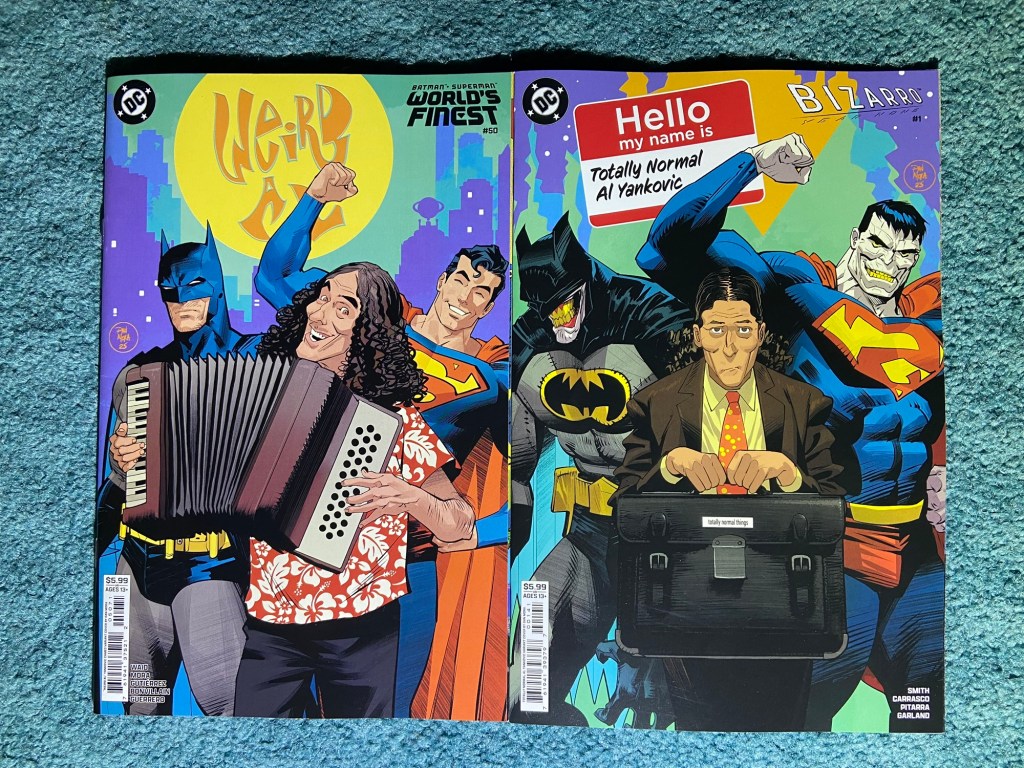 The two celebrity cameo variants featuring Weird Al Yankovich! I suppose one is from Earth-1 and the other is the Bizarro one.