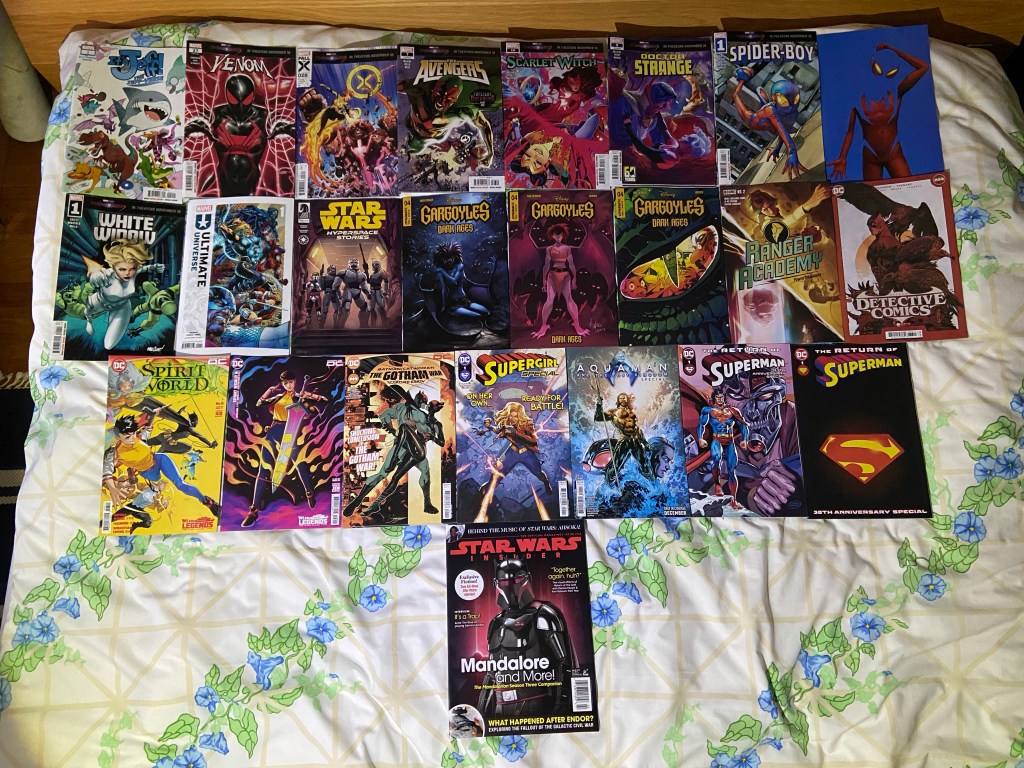 Spider-Man India 4 is from a month ago, the three Trick or Read issues were free and have content that I’ve mostly already read. And the bottom row all were a week or so late.