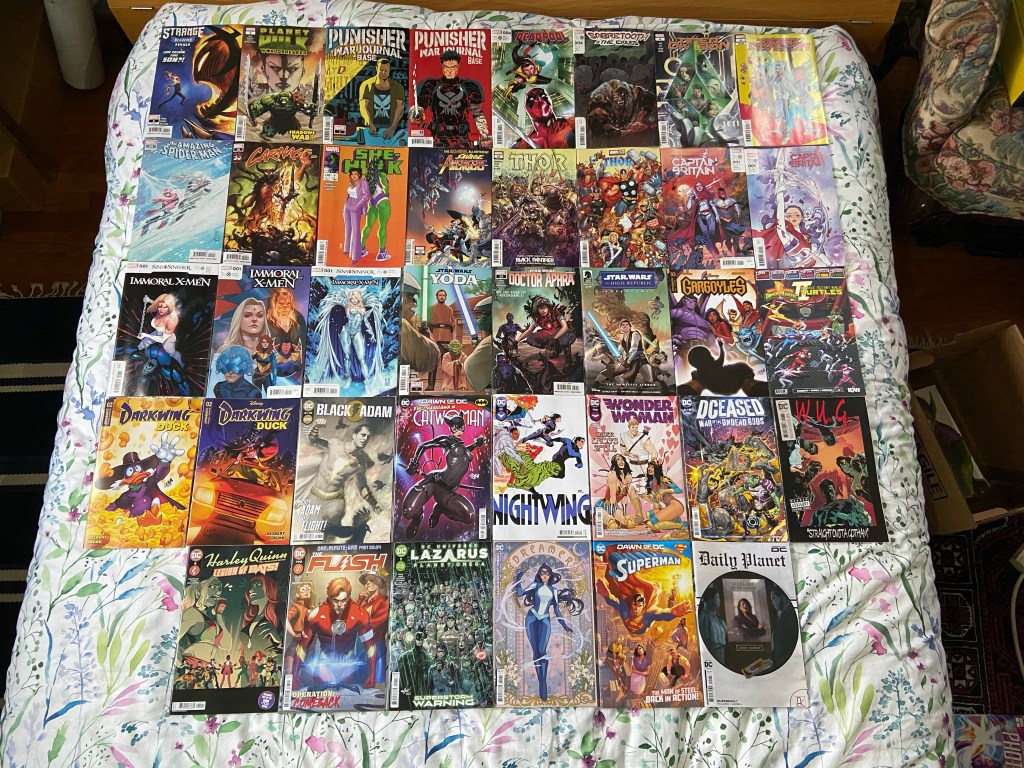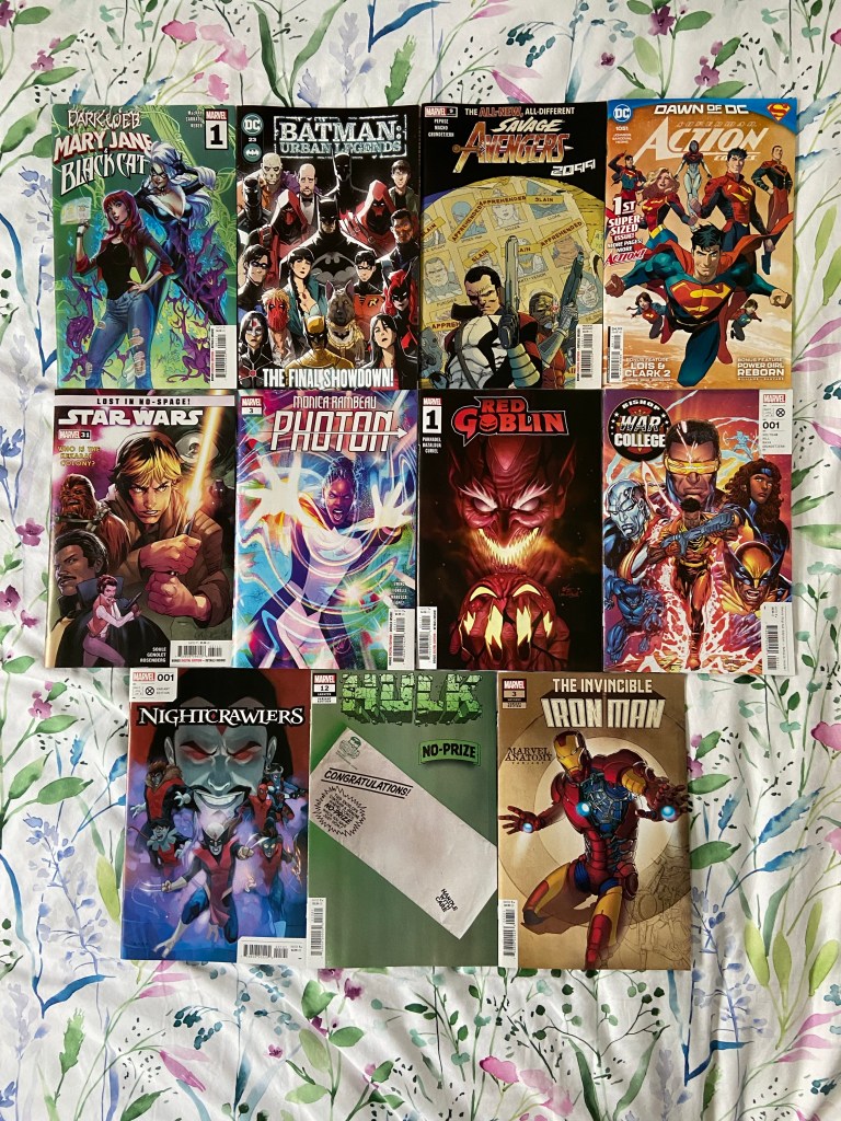 I’m excited for the next Women of Marvel issue, especially because Kamala is in the last story. I got Marauders 12 because it’s the final issue of this run. I’m enjoying the story in Vader as usual. Still can’t get to ASM till the end of next month. Punisher and Carnage’s story arc respectively are coming to a head. I’m always happy to see stories with Nadia Van Dyne. The Monica Rambeau story is fun. Doctor Strange is back and has a new run with this issue. This is the last issue of the Sins of Sinister set 100 years in the future. This is the penultimate issue of DCeased. I’m continuing to love this Nightwing run. I think this is the penultimate issue of the One-Minute War mini-event in Flash. This Wonder Woman issue is part of the Lazarus Planet event that’s technically over already. We got a Spring themed anthology special. Milestone continues celebrating 30 years with a special. And the final issue of Swamp Thing Green Hell finally came out.