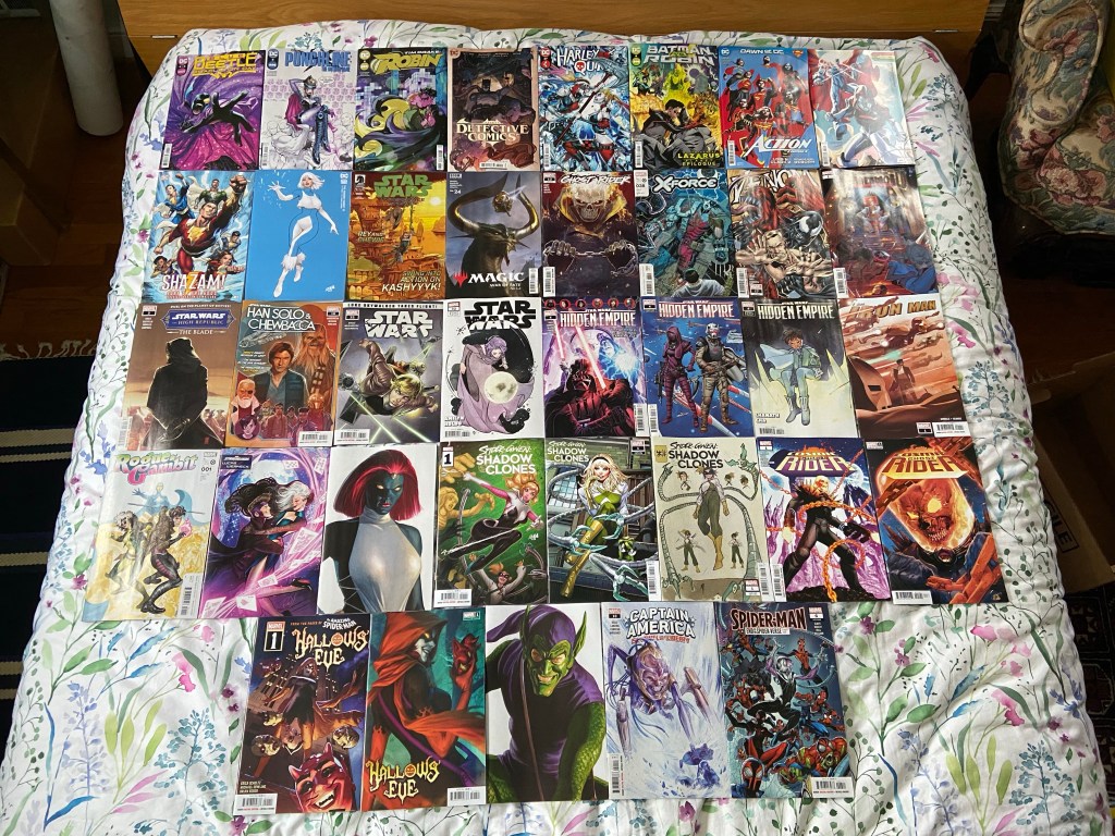 Now the Swamp Thing cover I thought was cool and wanted to get and should have come out in February of 2022. But something happened and issue 2 and 3 were delayed till this year. I liked it for the design mainly. The Neighbors variant I got because I liked the cover art and there was something that said there was UV but that may have just meant something else. The X-treme X-Men cover is one of the last Classic Homage covers (though I still have a couple to buy). I really liked the Tiger Division variant, I think I have other covers by the artist but I can’t recall them. That World’s Finest variant is of course because of Darkseid being on the cover. I just liked the color contrast of the Black Adam variant. I really love the look of the Wonder Woman variant. And the DCeased variant is another of that themed collection.
