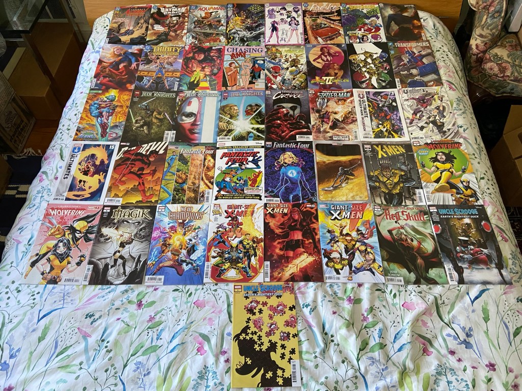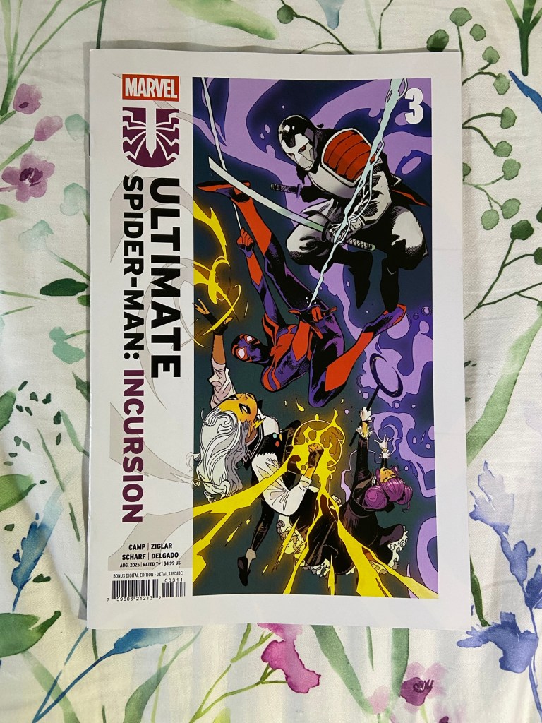 Damian needed some help from Bruce. Justice League Blue? The next issue of Trinity dropped. Chasing Amy got a comic by Kevin Smith in memory of Shannen Doherty. The Power Rangers and the Teenage Mutant Ninja Turtles got a third crossover run! Miles’ Spider-Man’s Incursion continued. We met the Ultimate universe’s Shang-Chi. Matt Murdock is back in the classic red suit! Gabby pops into Laura’s comic. The final issue of this Champions run dropped. And I think this is the last issue of Kamala’s time-traveling adventure. And Uncle Scrooge got a new title!