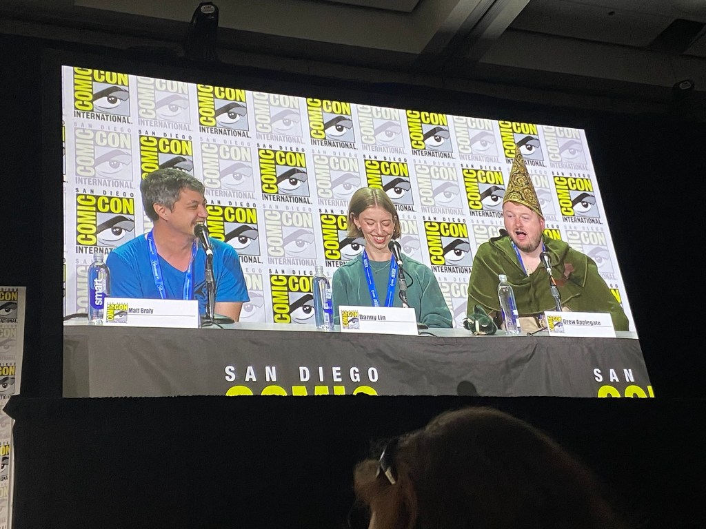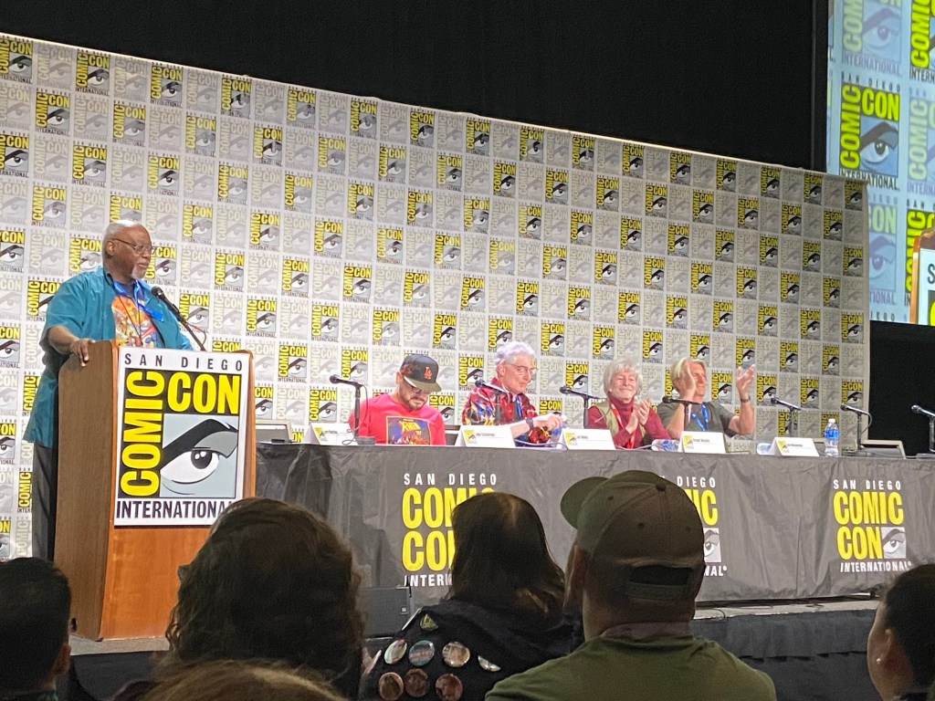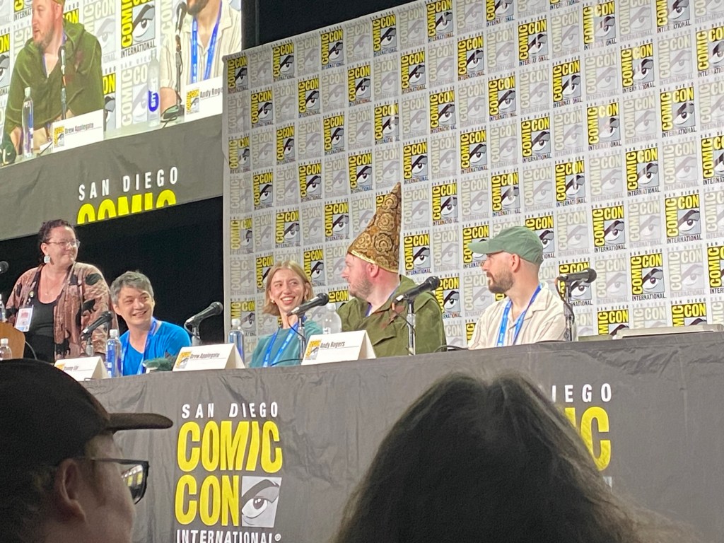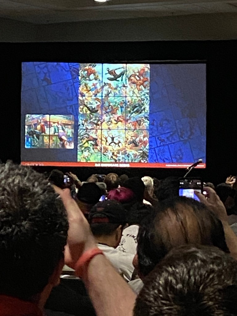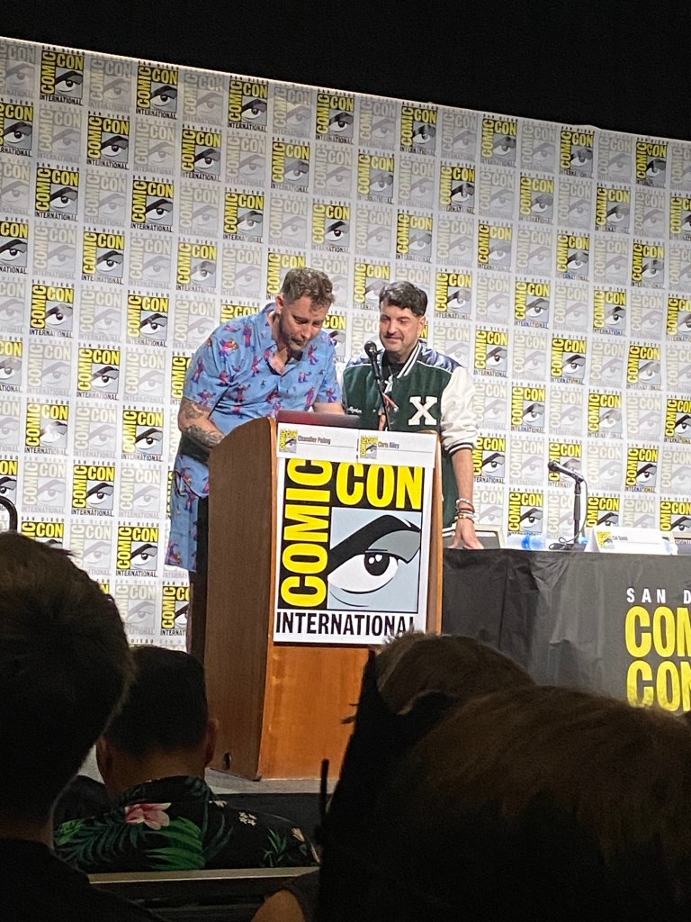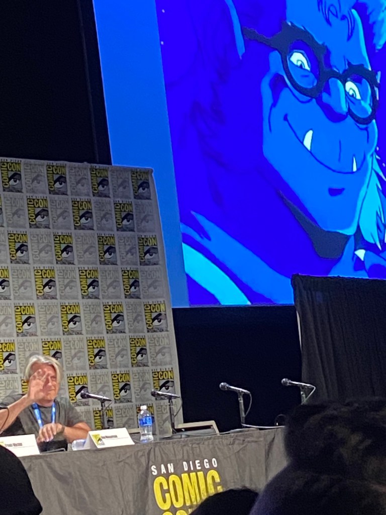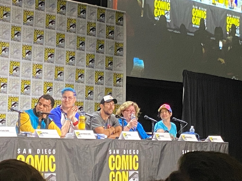 10:35-11:30 – The panel that day for me was the Amphibia panel with Matt Braly (the show’s creator). It was a wonderful look-back at the show and an intriguing look forward to the upcoming comic miniseries. It was nice to have this panel because as Matt said, when the final season of the show aired it was the pandemic, so there was no SDCC, and thus, no Amphibia panel. He said he really would have liked that to have happened. He and the other panelists (who were storyboard artists from the show) talked about the show’s art book and Marcy’s journal that were both made in collaboration with TokyoPop. I had actually forgotten that he was creating a comic set after the events of the show. So it was great to hear news about it. We got to see some promo art and then some unfinished pages from the first issue, the last page of which had us all tearing up from the emotions it brought down on us. I really enjoyed this panel. On the way out I saw podcast host Hector Narvarro sitting in the front row, he was there because his girlfriend is an anime voice actor and she was one of the panelists on the next one. We fist-bumped quickly. I had seen him back at SDCC 2019, also very briefly.