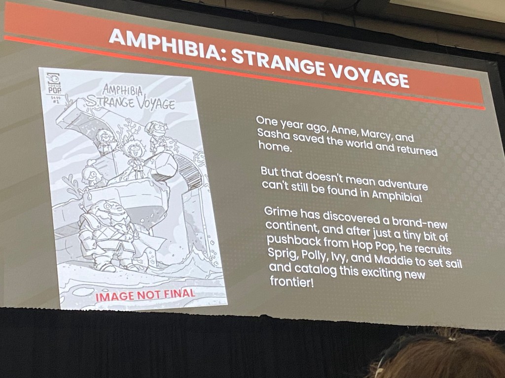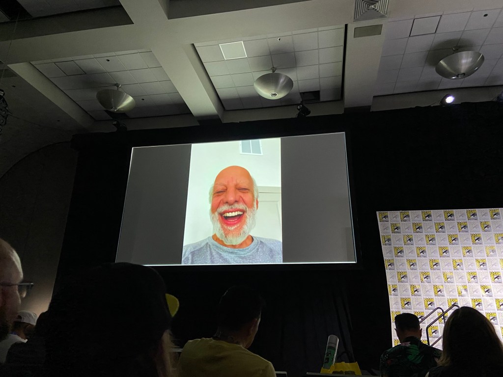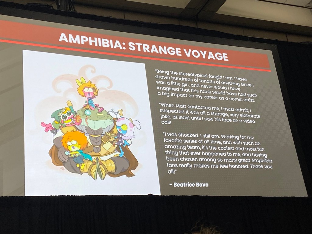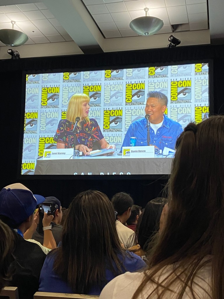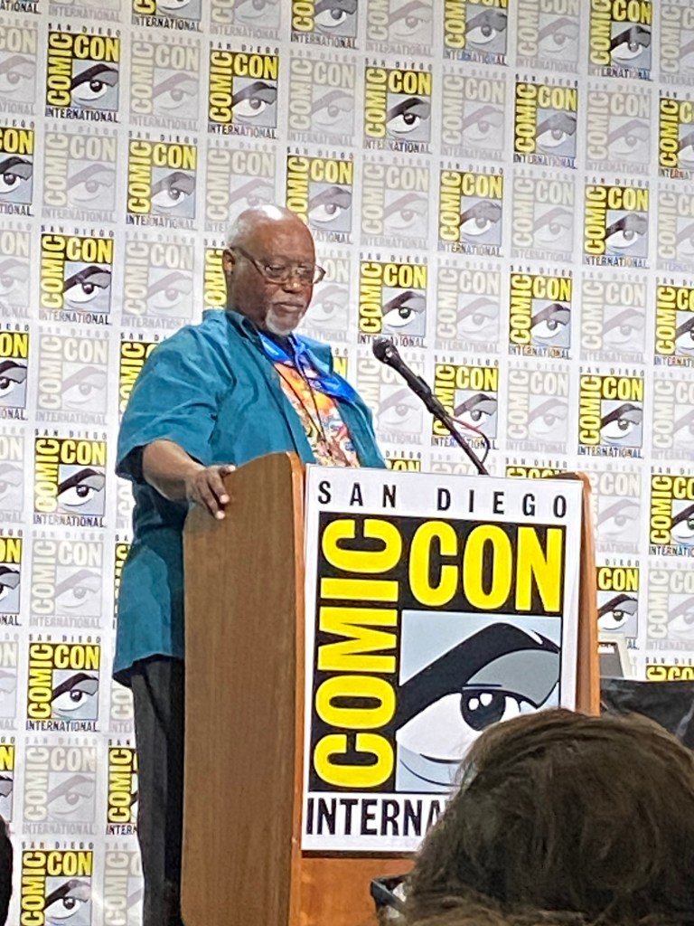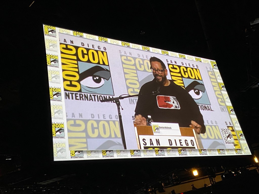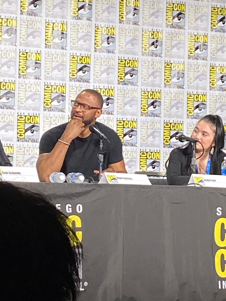 10:35-11:30 – The panel that day for me was the Amphibia panel with Matt Braly (the show’s creator). It was a wonderful look-back at the show and an intriguing look forward to the upcoming comic miniseries. It was nice to have this panel because as Matt said, when the final season of the show aired it was the pandemic, so there was no SDCC, and thus, no Amphibia panel. He said he really would have liked that to have happened. He and the other panelists (who were storyboard artists from the show) talked about the show’s art book and Marcy’s journal that were both made in collaboration with TokyoPop. I had actually forgotten that he was creating a comic set after the events of the show. So it was great to hear news about it. We got to see some promo art and then some unfinished pages from the first issue, the last page of which had us all tearing up from the emotions it brought down on us. I really enjoyed this panel. On the way out I saw podcast host Hector Narvarro sitting in the front row, he was there because his girlfriend is an anime voice actor and she was one of the panelists on the next one. We fist-bumped quickly. I had seen him back at SDCC 2019, also very briefly.