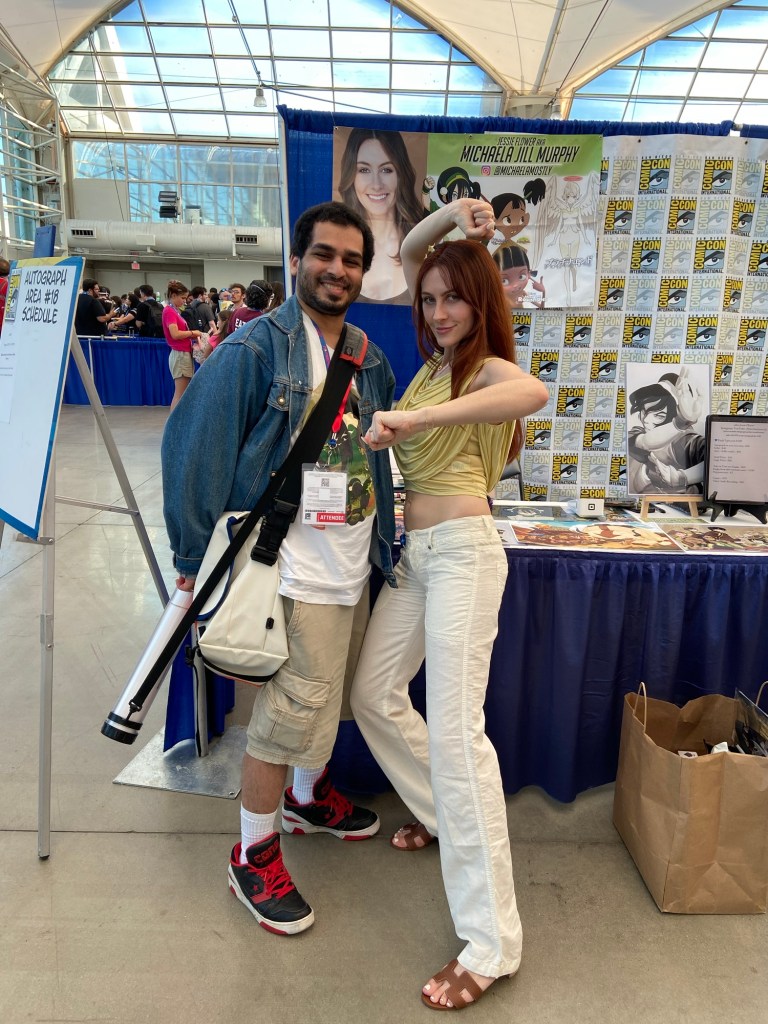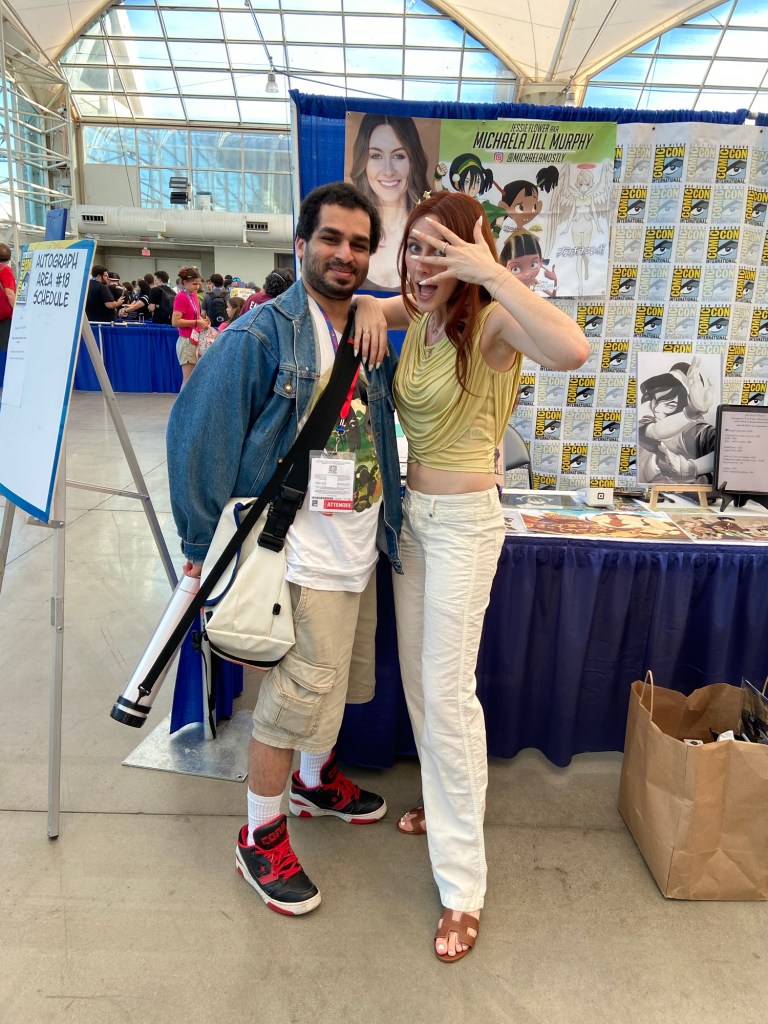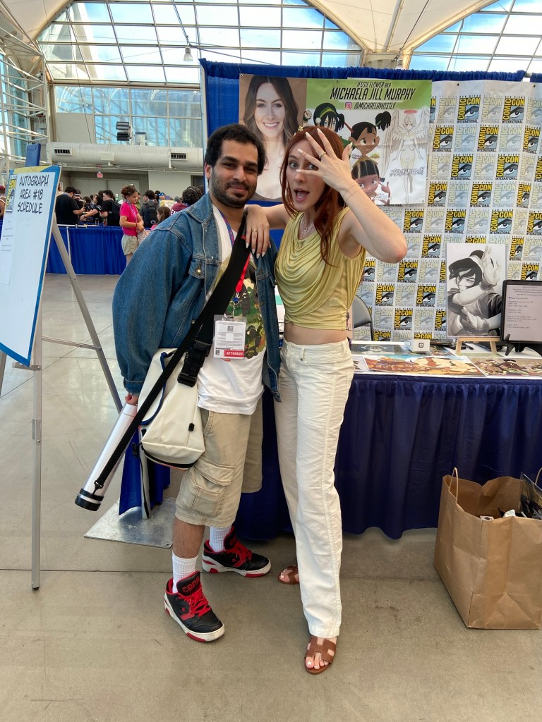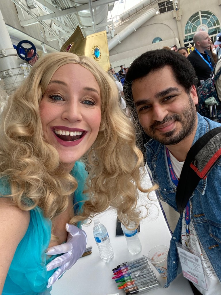 I visited with Hilly Hindi of Hillywood creation. I met her and her sister Hannah in 2022 also at SDCC. Once I showed her the photo from 2022 and my IG, she recognized me and was very happy to meet again. She does love Hillywood fans. We chatted a bit and I had to tell her that I wouldn’t be able to attend the panel because it was at the same time as another panel I always go to. She was like oh no! Haha. But it was such a lovely conversation. I’ll certainly try to meet her (and Hannah) whenever they attend SDCC. And one day I’ll get to the panel!! And this year there were huge reveals at the panel! Gahh! But yeah, I got a signed print and a photo. I also was wearing their most recent Hillywood shirt based on their upcoming parody.