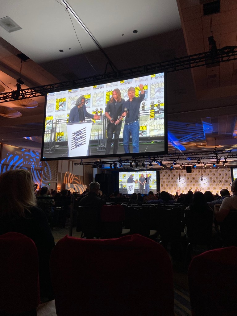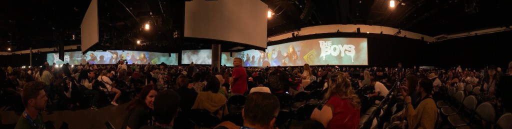 Friday was an interesting day, because this year, there were no panels in Hall H on Sunday. So, some panels that would have been there on Sunday were moved to Thursday or Friday. One of those was the Doctor Who panel, which as most people know, is my number one franchise that I follow. So I had to get into Hall H on this day. But I also had to get into the wristband line for Saturday’s Hall H too. So, when I got to the convention center, I got in line for Friday’s Hall H, got in after two hours, and happily got to see that panel along with two others.