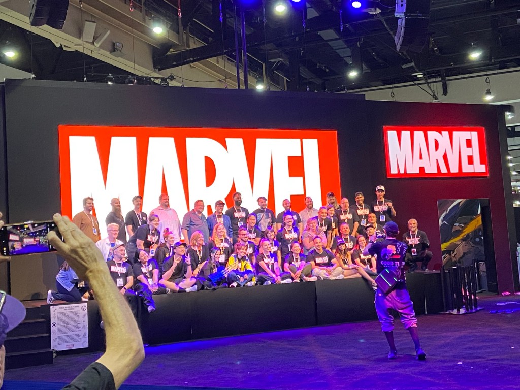 I went to the Marvel booth for a photo with the Fantastic Four’s robot, H.E.R.B.I.E. and Marvel Unlimited exclusives, including a H.E.R.B.I.E. pin, an FF button and a Peach Momoko variant cover.