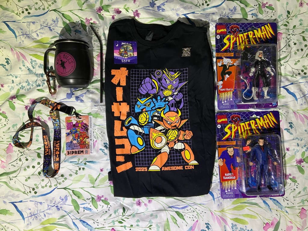 The first shot I got walking onto the exhibit hall floor.A Doctor Who cosplayer that I thought had a great cosplay!Taken while leaving the convention on day 1.A Thirteen Doctor cosplayer I’d seen a couple times around during that first day. Some kind of Marowak warrior cosplayer with some cool looking armor. I was in line when I saw him, so I couldn’t get a proper photo.A Wolf (Kippo and the Age of the Wonderbeasts) cosplayer!! I was so happy to see someone cosplaying from that show!The emptying autograph area on the final day after I’d finished meeting Orlando Bloom. My various items I bought at the con. The mug was a refillable one that you could get and have a discounted price for refills of soda or water each day. If you get the mug on the same day, all the drinks that day are free. The main convention shirt. And two Marvel Legends figures from 2020 and 2022 respectively.The design of the shirt. The 10th Anniversary pin from 2023. I just never got the pin when I attended that year.