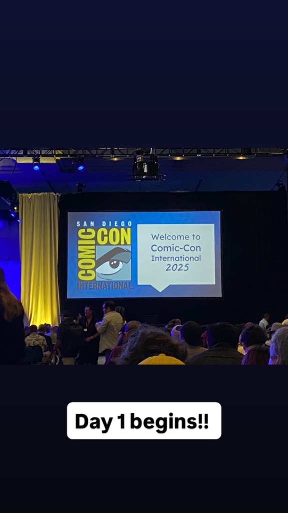 SDCC 2025 is over! I will miss it even with all the walking. I always enjoy the experience and some things are always the same, and others are sometimes different. I flew back yesterday afternoon. I was at a hotel again this year, though not the same one as last year. I did like last year’s better, but this one was fine. This year, there was a much reduced presence in Hall H, and therefore, I didn’t need to do any late night wristband line-waiting. Here’s the trip!: