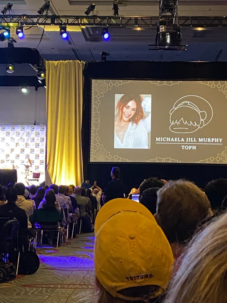 10:30-11:30am – Janet, Dante, Michaela (Toph), Greg (the second VA for Iroh) and Cara O’Neil (works for the publishing side of ATLA) we’re the panelists. They first chatted about Iroh and then read quotes and then read some scenes together. Those scenes included: from The Chase: Toph and Iroh meeting. From The Old Masters: Zuko and Iroh reuniting. Iroh’s speech to team Avatar. Another person arrived to the panel, Isabella Boettcher she works on current ATLA stuff that welll be getting next year. She’s been on the podcast before. She vaguely talks about upcoming things. Cara mentions the upcoming Iroh comic. Iroh’s Adventure Guide roleplaying game mentioned. We got a LOK comic reveal, the Mystery of Penquan Island. Then they asked us trivia to win prizes. The trivia questions were quite difficult! Haha.